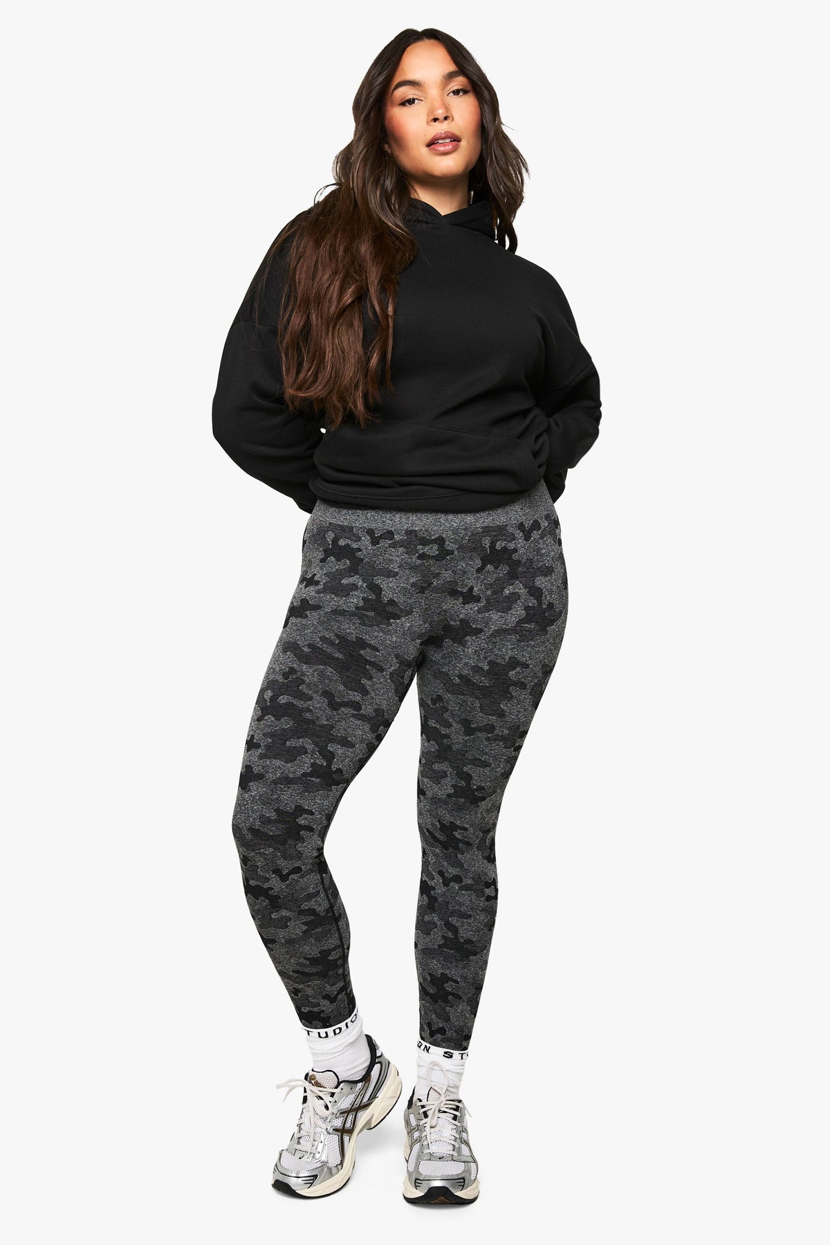 These Plus seamless camouflage sport leggings from Boohoo are the perfect fusion of fashion and function for your active lifestyle. The second-skin fit contours to your curves whilst the seamless construction prevents rubbing during high-intensity training. Style with an oversized hoodie as shown for pre-gym warmups or pair with a cropped sports bra for studio sessions. The versatile camouflage pattern works brilliantly for both gym sessions and casual weekend wear - simply add chunky trainers and a crossbody bag for running errands. The high waistband stays put during squats and stretches, giving you confidence to focus on your workout rather than adjusting your clothing. These leggings transition effortlessly from morning yoga to afternoon coffee catchups, making them an essential addition to your activewear rotation.Discover Plus Active Camo Seamless Gym Leggings available to buy online at us.boohoo.com. Available with quick delivery and easy return options. Shop now!Discover Plus Active Camo Seamless Gym Leggings available to buy online at us.boohoo.com. Available with quick delivery and easy return options. Shop now!