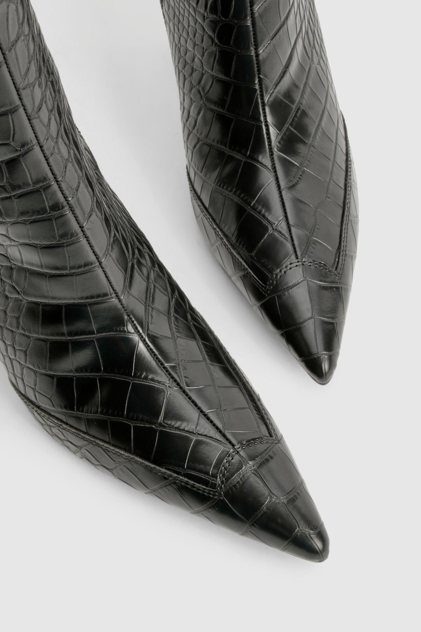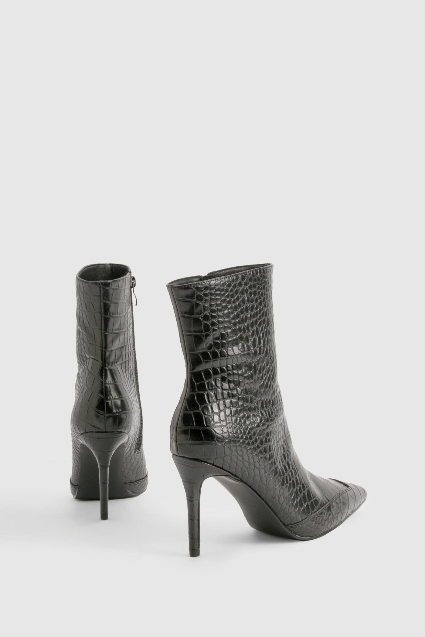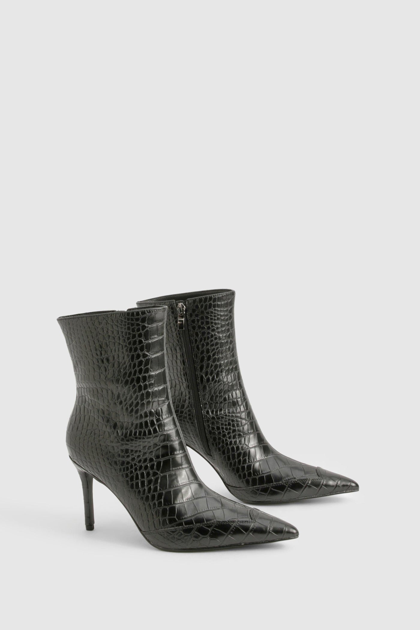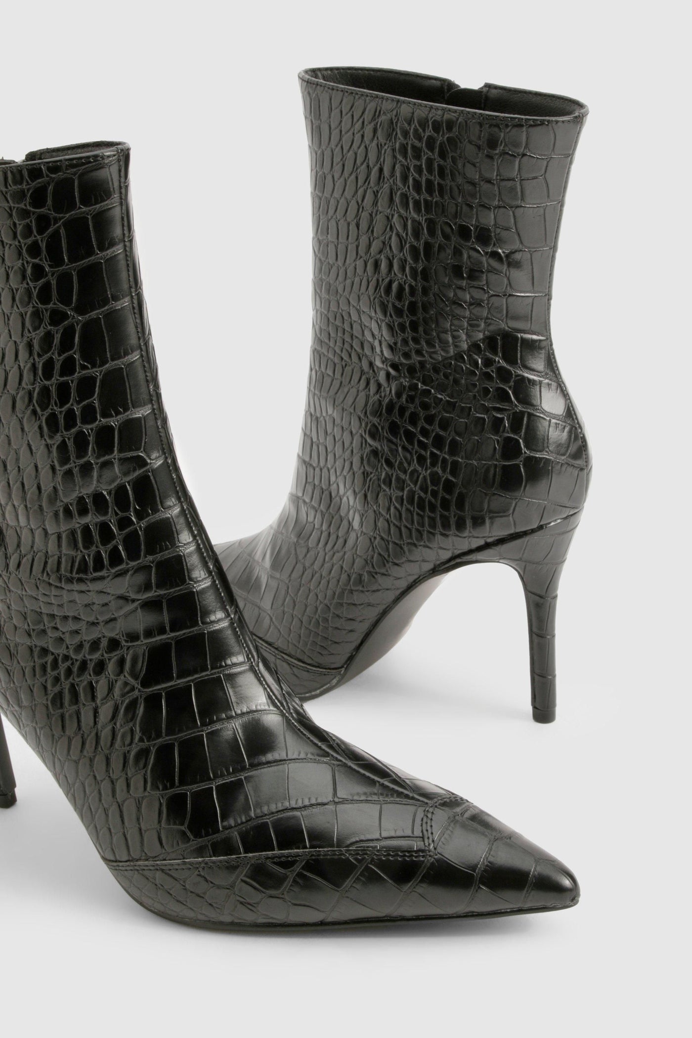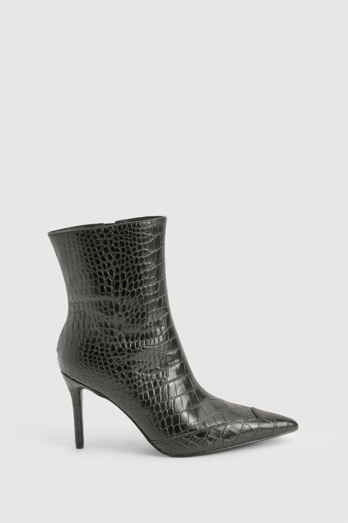 Make a fierce impression with these eye-catching ankle boots. The crocodile-effect texture adds a touch of wild glamour to any outfit, while the pointed toe and high heel create a sleek, elongating effect. Perfect for those who love to stand out, these boots can effortlessly transition from day to night. Pair them with skinny jeans and a leather jacket for a rock-chic look, or style them with a midi dress for a night out on the town. The versatile mid-calf length allows for various styling options, making these boots a must-have addition to your wardrobe. Whether you're heading to a casual gathering or a more formal event, these statement boots will ensure you're always stepping out in style.Discover Pointed Toe Croc Detail Heeled Ankle Boot available to buy online at us.boohoo.com. Available with quick delivery and easy return options. Shop now!Discover Pointed Toe Croc Detail Heeled Ankle Boot available to buy online at us.boohoo.com. Available with quick delivery and easy return options. Shop now!