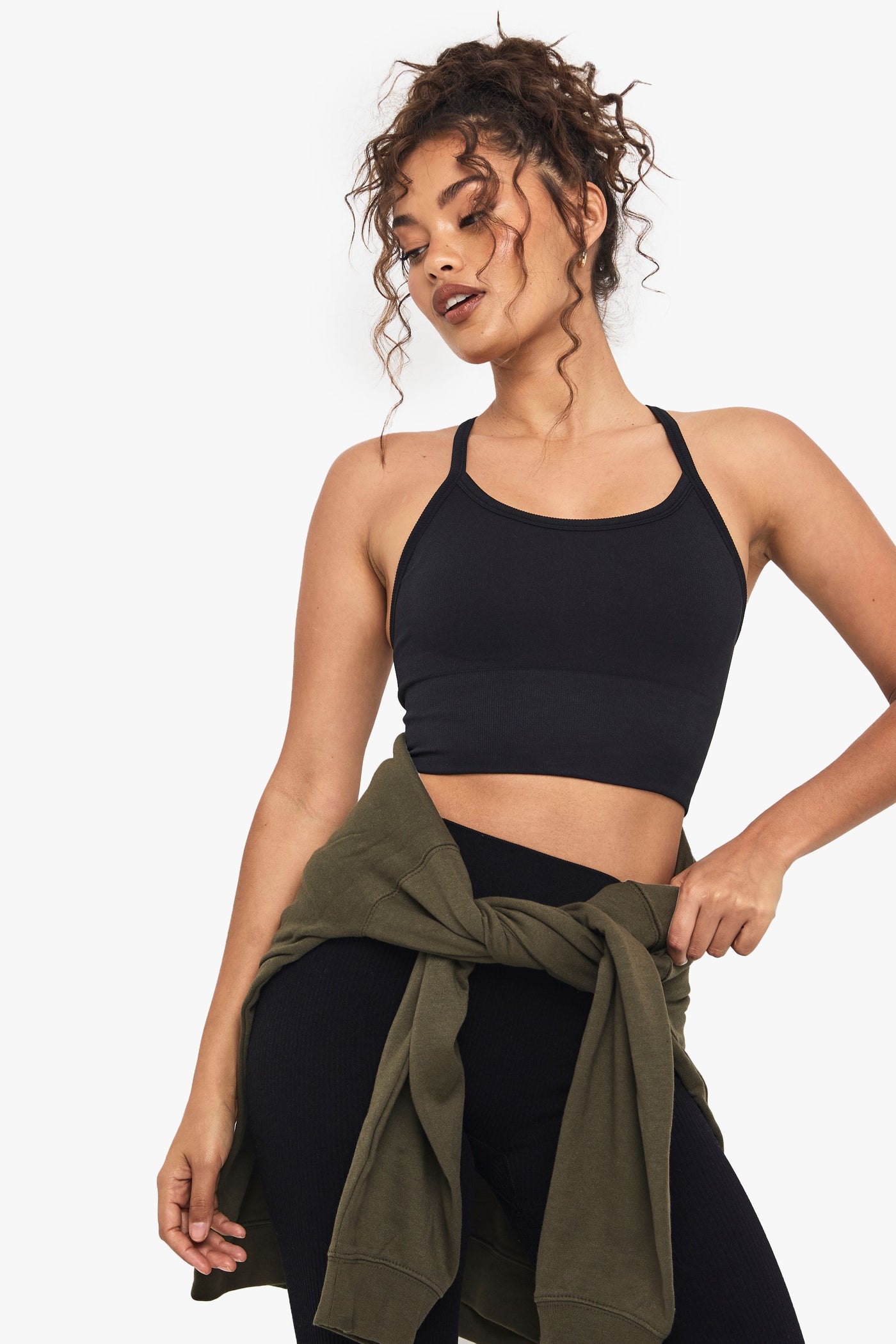 Embrace comfort and style with this versatile seamless ribbed longline sports bra from Boohoo. Perfect for low-impact workouts or as a chic layering piece, this bra combines functionality with fashion-forward design. The longline silhouette offers extended coverage, making it ideal for pairing with high-waisted leggings or shorts for a coordinated athleisure look. Whether you're heading to a yoga class, running errands, or meeting friends for a casual brunch, this sports bra is your go-to choice. Style it with matching leggings and trendy trainers for a put-together gym ensemble, or layer it under an oversized shirt for a relaxed weekend outfit. The ribbed texture adds a touch of interest, while the adjustable straps ensure a perfect fit for all-day comfort. Ideal for the fashion-conscious woman who values both style and practicality in her wardrobe.Discover Boohoo Basics Seamless Rib Longline Light Support Sports Bra available to buy online at us.boohoo.com. Available with quick delivery and easy return options. Shop now!Discover Boohoo Basics Seamless Rib Longline Light Support Sports Bra available to buy online at us.boohoo.com. Available with quick delivery and easy return options. Shop now!