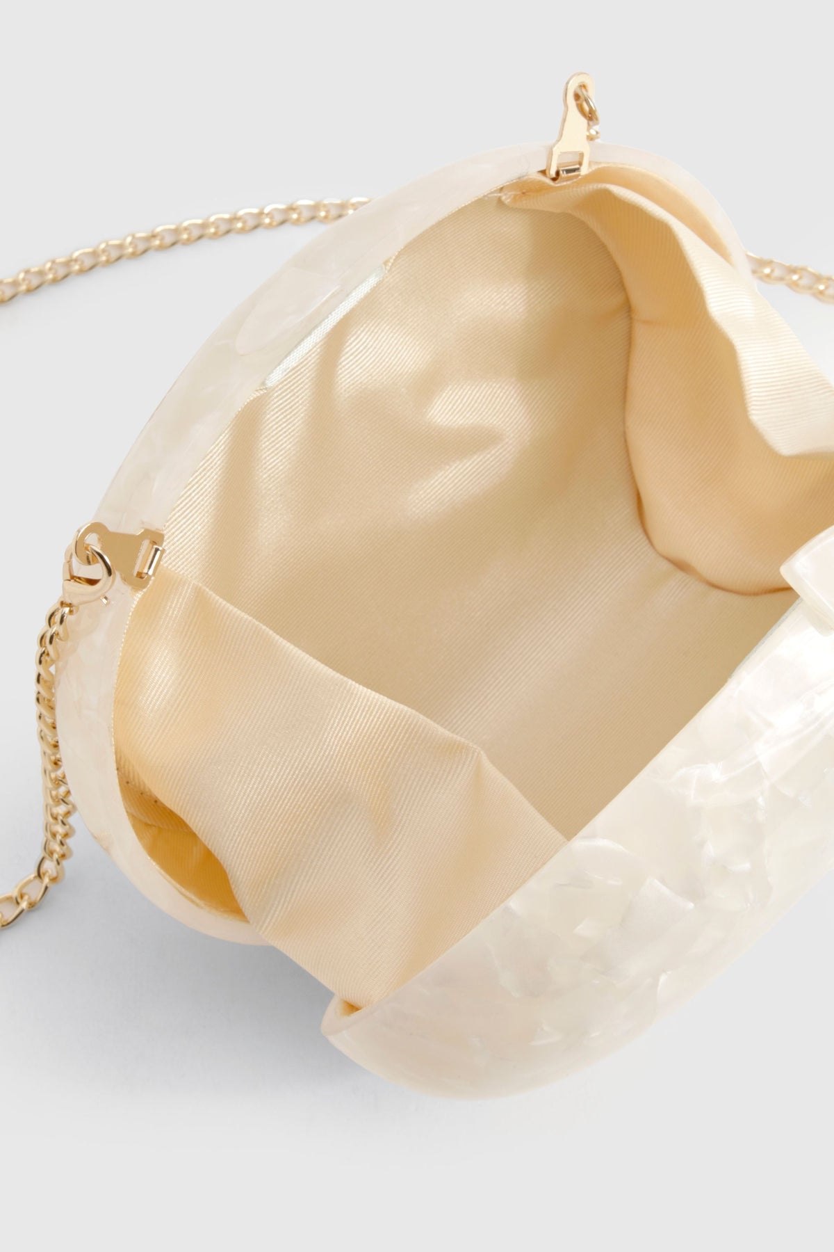 Make a statement with this eye-catching marble-effect clutch bag that adds instant sophistication to any evening ensemble. The structured oval design offers a contemporary twist on classic evening accessories, whilst the detachable gold-tone chain allows you to switch effortlessly between a handheld clutch and an elegant shoulder bag. Perfect for nights out when you want to travel light but stylishly, this Boohoo clutch complements both minimalist and bold outfits. Style with a sleek bodycon dress and strappy heels for club nights, or pair with tailored trousers and a silky camisole for cocktails with the girls. The textured finish ensures this piece will stand out in dimly lit venues whilst maintaining a refined aesthetic that works across multiple occasions.Discover Marble Acrylic Clutch Bag available to buy online at us.boohoo.com. Available with quick delivery and easy return options. Shop now!Discover Marble Acrylic Clutch Bag available to buy online at us.boohoo.com. Available with quick delivery and easy return options. Shop now!