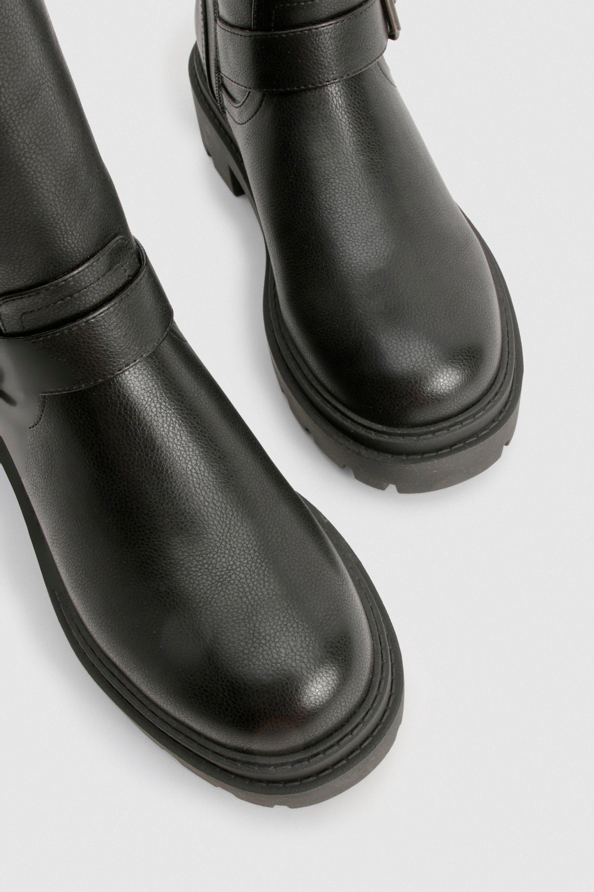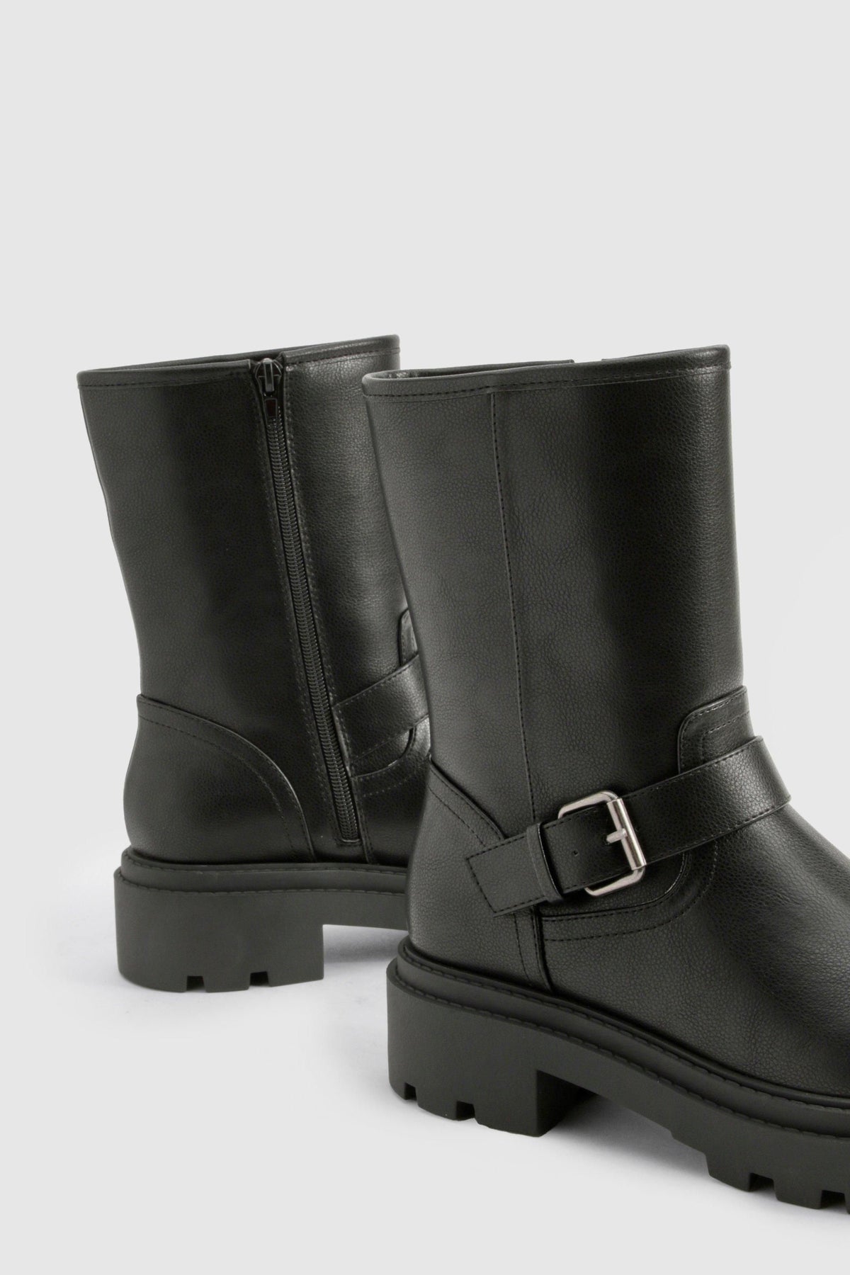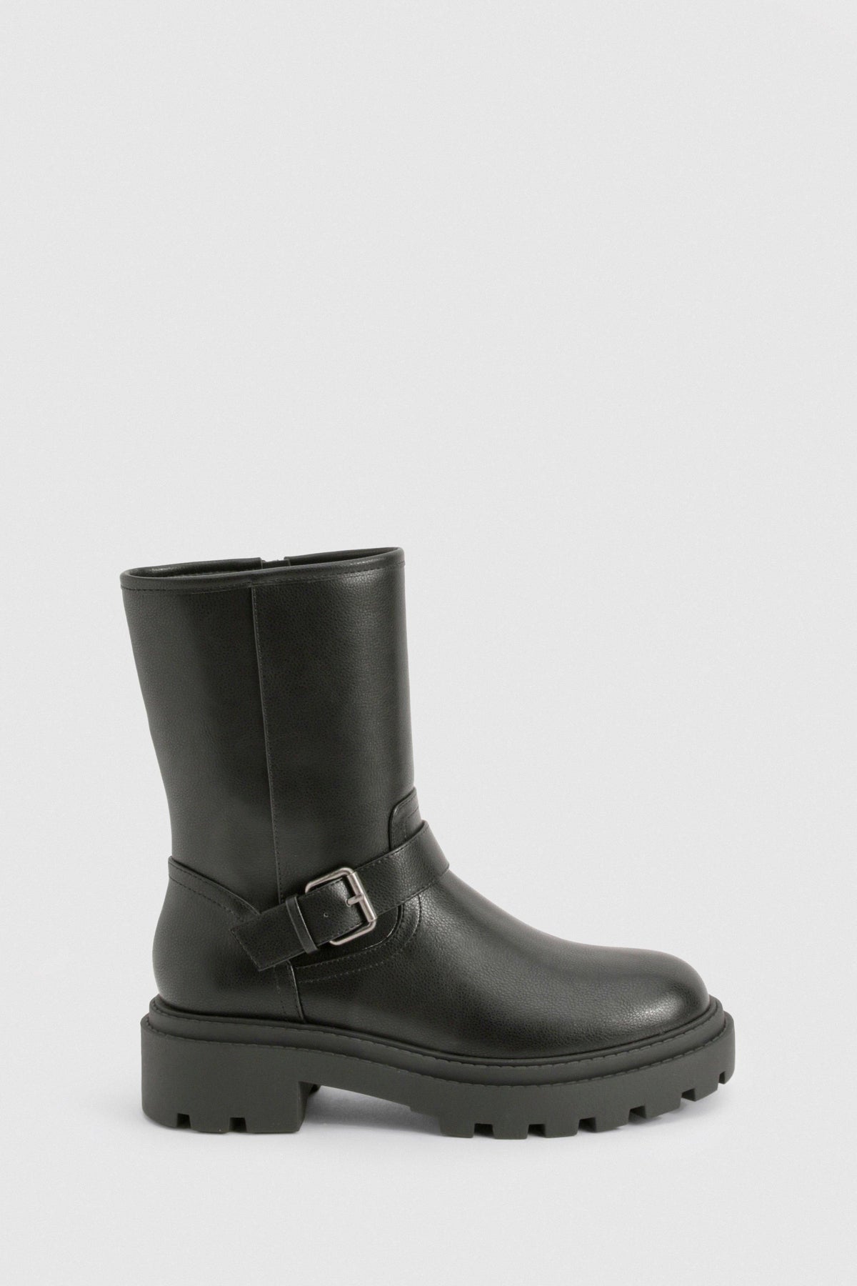 Step out in style with these trendy ankle boots from Boohoo. The mid-height heel offers the perfect balance of comfort and elevation, making them ideal for all-day wear. The chunky, treaded sole not only adds to the boot's contemporary aesthetic but also provides excellent traction for confident strides. Designed with convenience in mind, the elastic side panels ensure effortless slipping on and off, while the decorative buckle adds a dash of attitude to your look. These versatile boots are a wardrobe essential, perfect for pairing with skinny jeans and an oversized jumper for a casual day out, or with a flowy midi dress for a more polished ensemble. Whether you're heading to a family gathering or meeting friends for brunch, these boots will keep you looking stylish and feeling comfortable throughout the day.Discover Biker Buckle Detail Chunky Ankle Boot available to buy online at us.boohoo.com. Available with quick delivery and easy return options. Shop now!Discover Biker Buckle Detail Chunky Ankle Boot available to buy online at us.boohoo.com. Available with quick delivery and easy return options. Shop now!