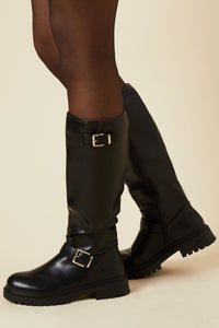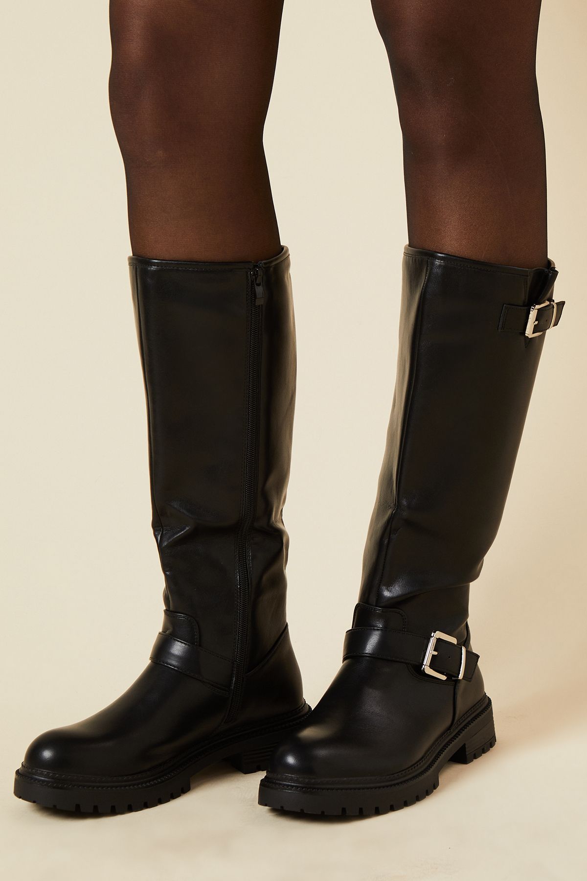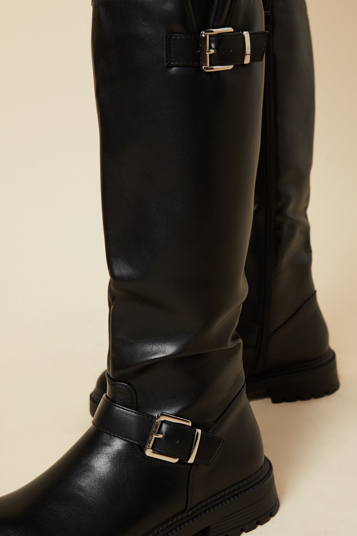 Step out in style with these Jori Double Buckle Chunky Biker Knee Boots from Dorothy Perkins. These boots radiate an edgy yet versatile appeal, perfect for the fashion-forward woman who values both style and comfort. The knee-high silhouette paired with the chunky sole creates a bold statement, while the double buckle detailing adds a touch of biker-chic flair. Ideal for casual daywear, these boots can effortlessly transition from a relaxed brunch with friends to a family gathering. Style them with skinny jeans and an oversized jumper for a cosy autumn look, or pair them with a flowy midi dress and leather jacket for a more daring ensemble. The low heel ensures all-day comfort, making these boots a practical choice for busy days out and about. With their versatile design, these Jori boots are sure to become a staple in your wardrobe.Discover Jori Double Buckle Chunky Biker Knee Boot available to buy online at us.boohoo.com. Available with quick delivery and easy return options. Shop now!Discover Jori Double Buckle Chunky Biker Knee Boot available to buy online at us.boohoo.com. Available with quick delivery and easy return options. Shop now!