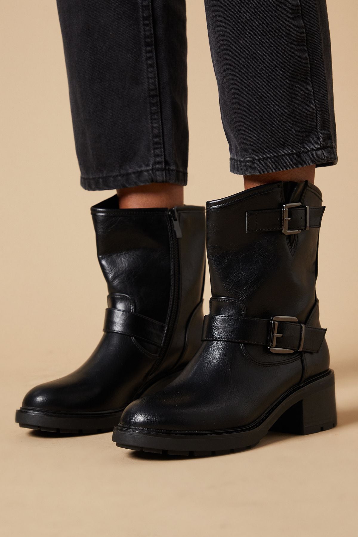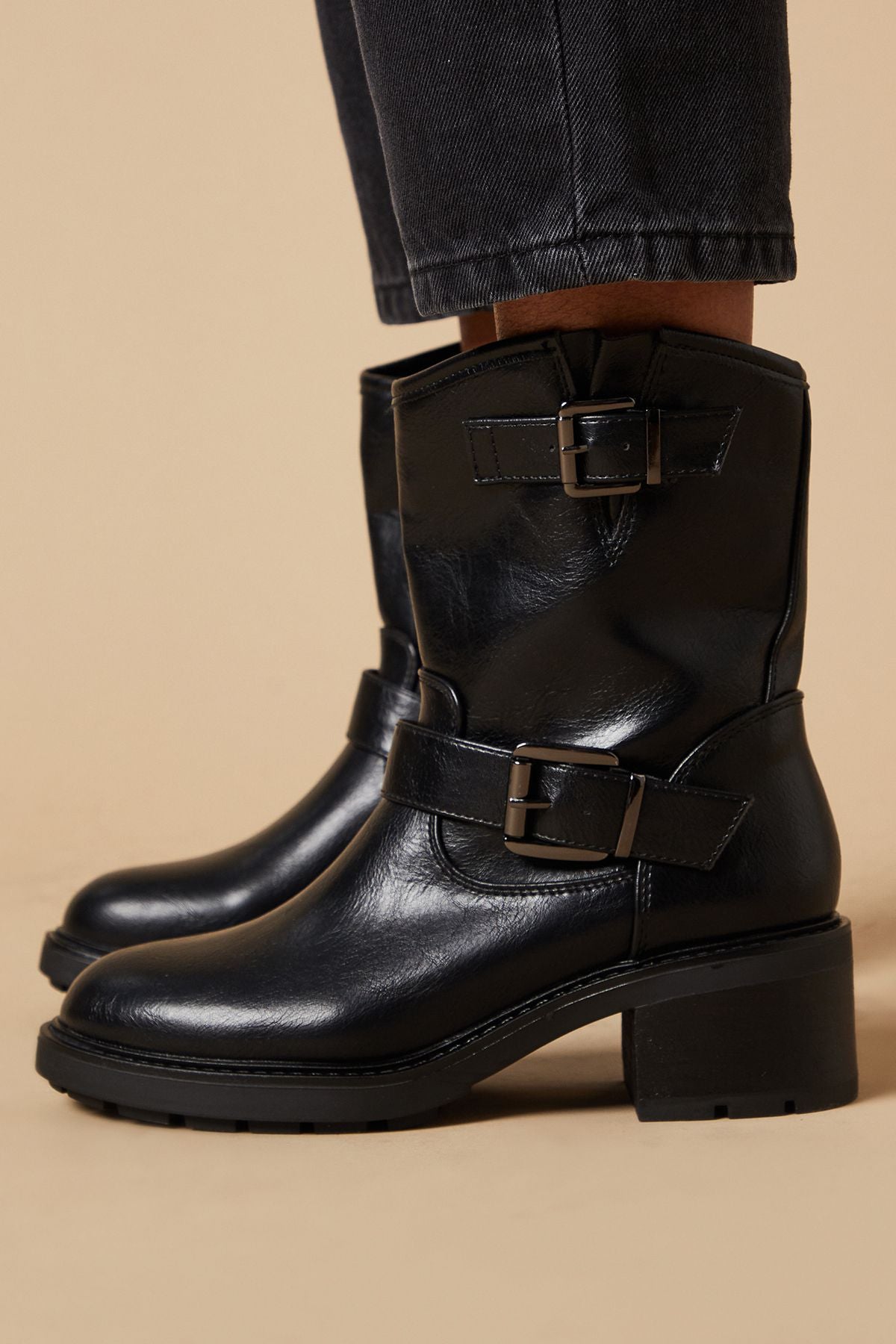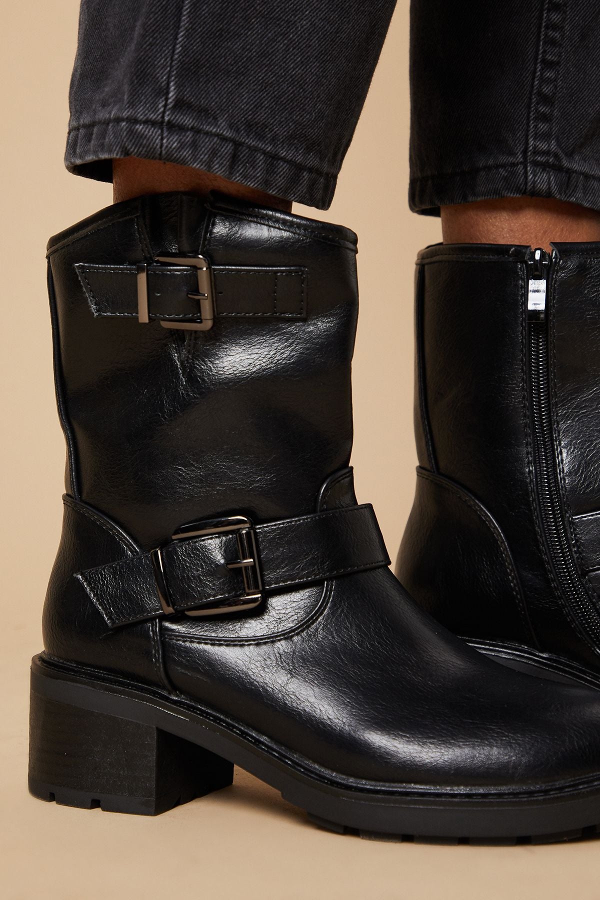 Step out in style with the Oscar Buckle Detail Biker Boot, a perfect blend of edgy charm and practical comfort. These boots boast a sleek faux leather construction, embodying the classic biker aesthetic with a feminine twist. The striking buckle accents add a touch of rebellious flair, while the mid-height heel offers just the right amount of elevation without compromising on comfort. Ideal for casual outings, family gatherings, or a night out with friends, these boots effortlessly transition from day to evening wear. Pair them with skinny jeans and a leather jacket for a classic rock-inspired look, or contrast their rugged appeal with a flowy floral dress for an unexpected style statement. The Oscar boots are not just a fashion choice; they're a versatile wardrobe staple that will carry you through the seasons with confidence and panache.Discover Oscar Buckle Detail Biker Boot available to buy online at us.boohoo.com. Available with quick delivery and easy return options. Shop now!Discover Oscar Buckle Detail Biker Boot available to buy online at us.boohoo.com. Available with quick delivery and easy return options. Shop now!