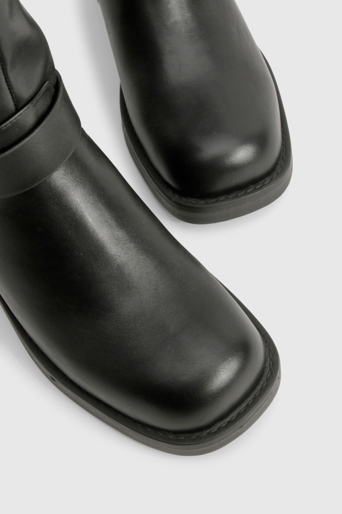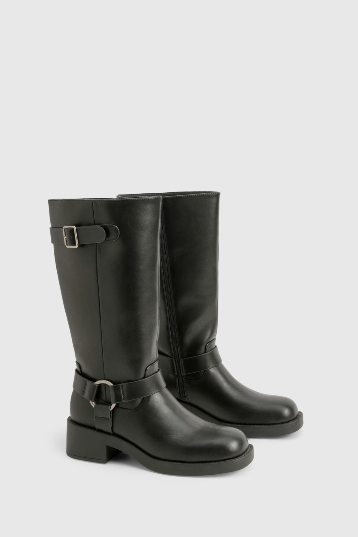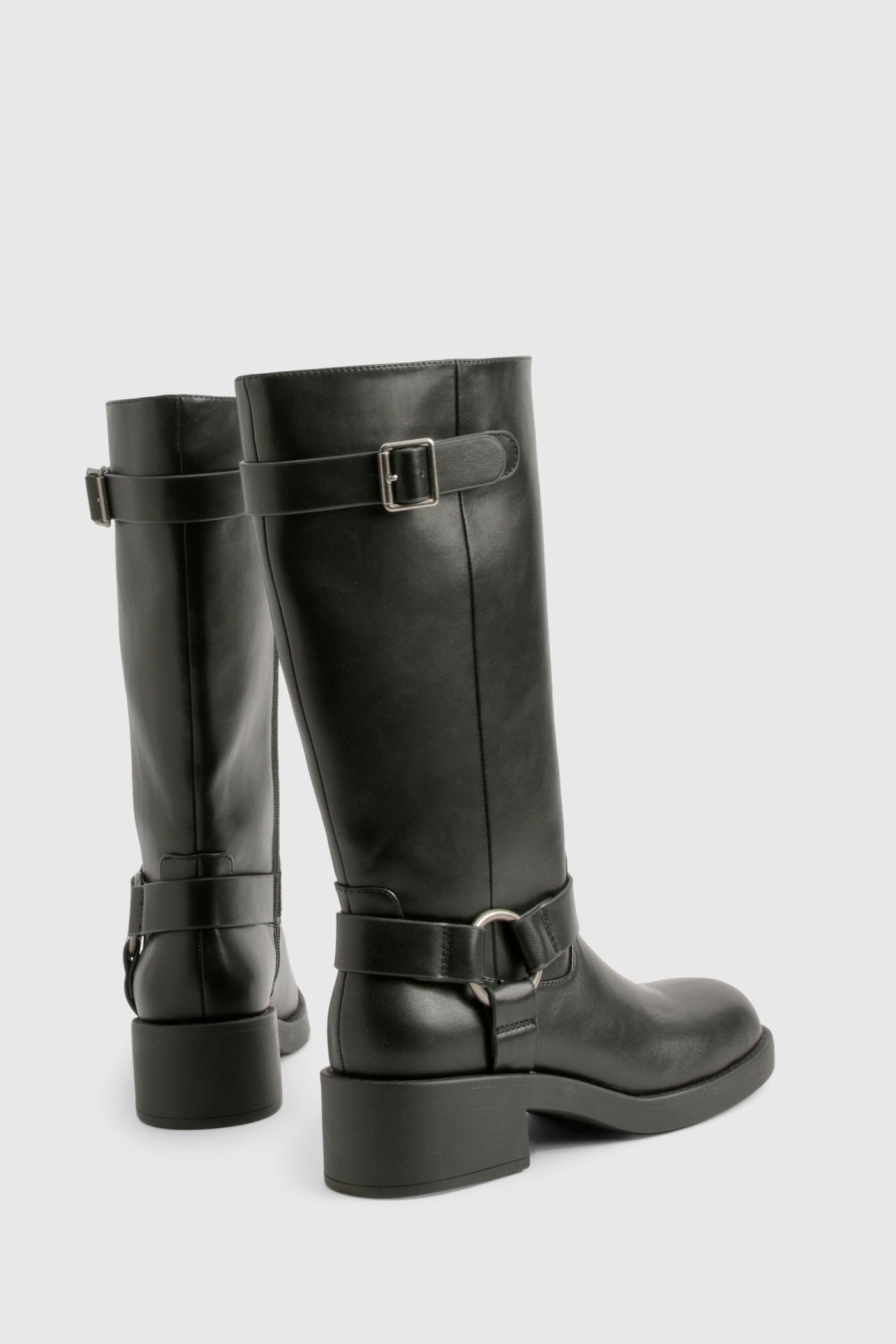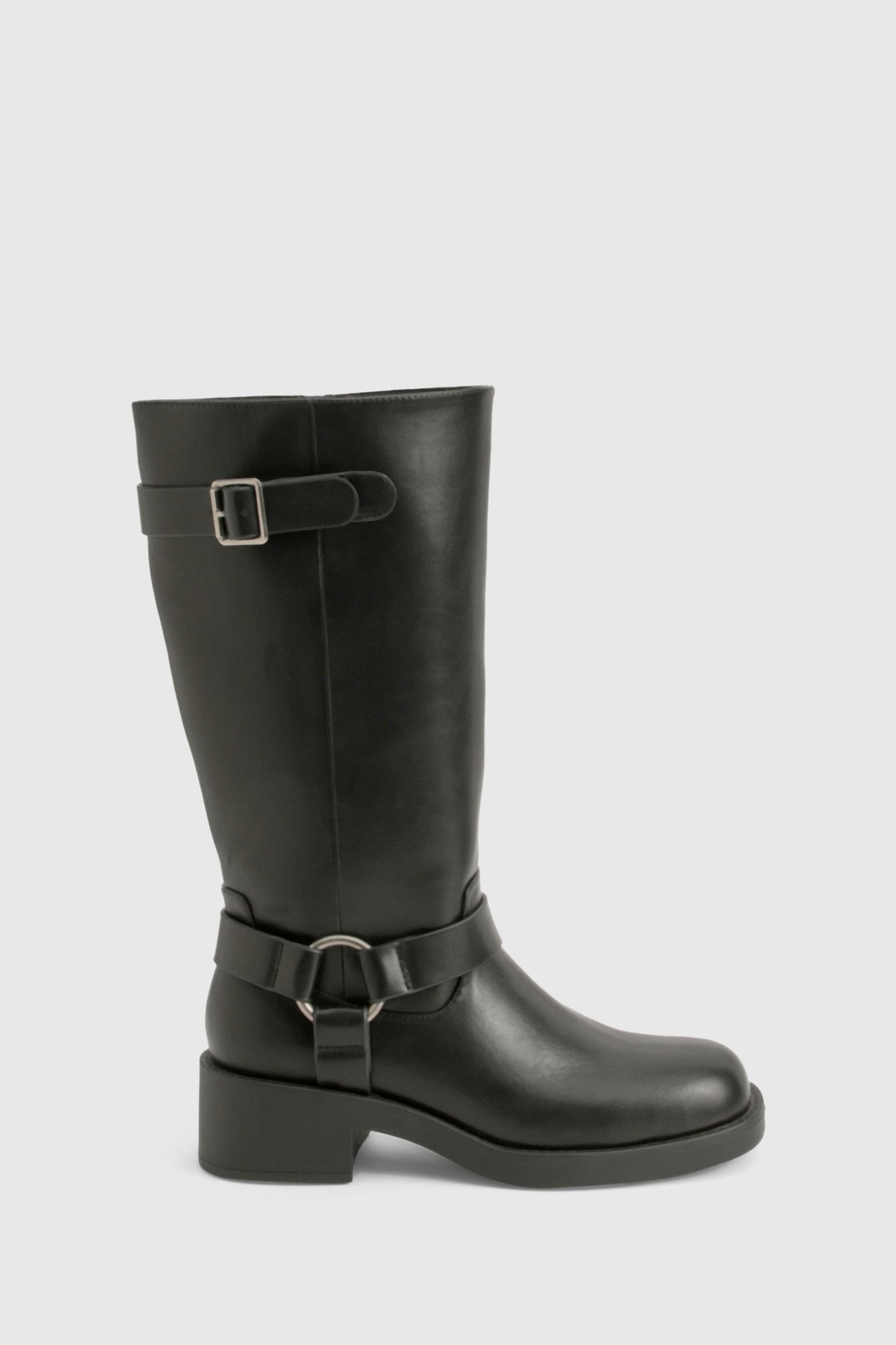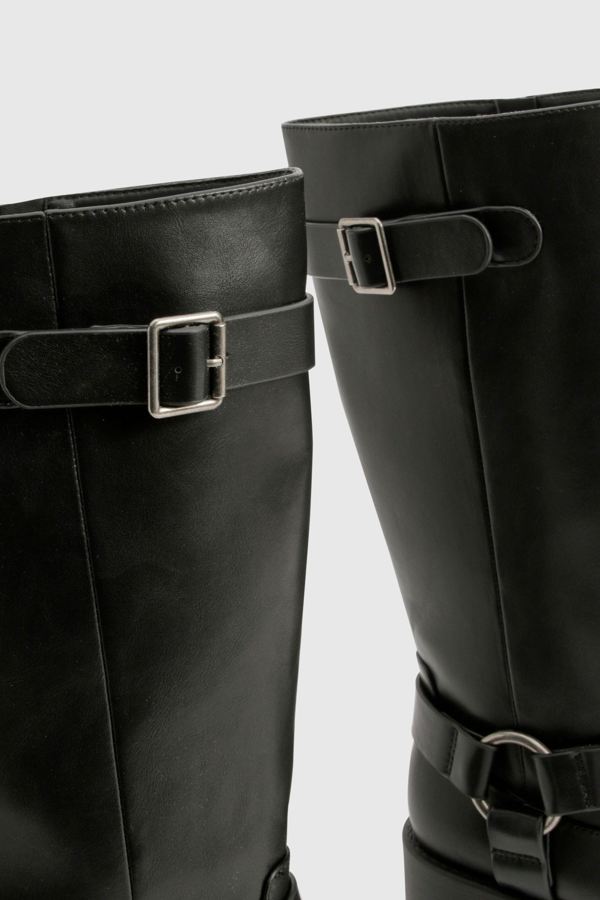Make a bold statement with these structured knee-high biker boots. The textured finish and edgy harness detailing create a rebellious look that's perfect for the fashion-forward trendsetter. Pair them with a mini skirt and oversized jumper for a chic daytime ensemble, or style with skinny jeans and a leather jacket for a night out with friends. The mid-height heel offers comfort without sacrificing style, making these boots ideal for all-day wear. Whether you're heading to a casual family gathering or a night on the town, these versatile boots will add a touch of attitude to any outfit. The chunky sole not only provides durability but also ensures steady footing, allowing you to strut with confidence on various terrains.Discover Textured Harness Detail Biker Knee High Boot available to buy online at us.boohoo.com. Available with quick delivery and easy return options. Shop now!Discover Textured Harness Detail Biker Knee High Boot available to buy online at us.boohoo.com. Available with quick delivery and easy return options. Shop now!