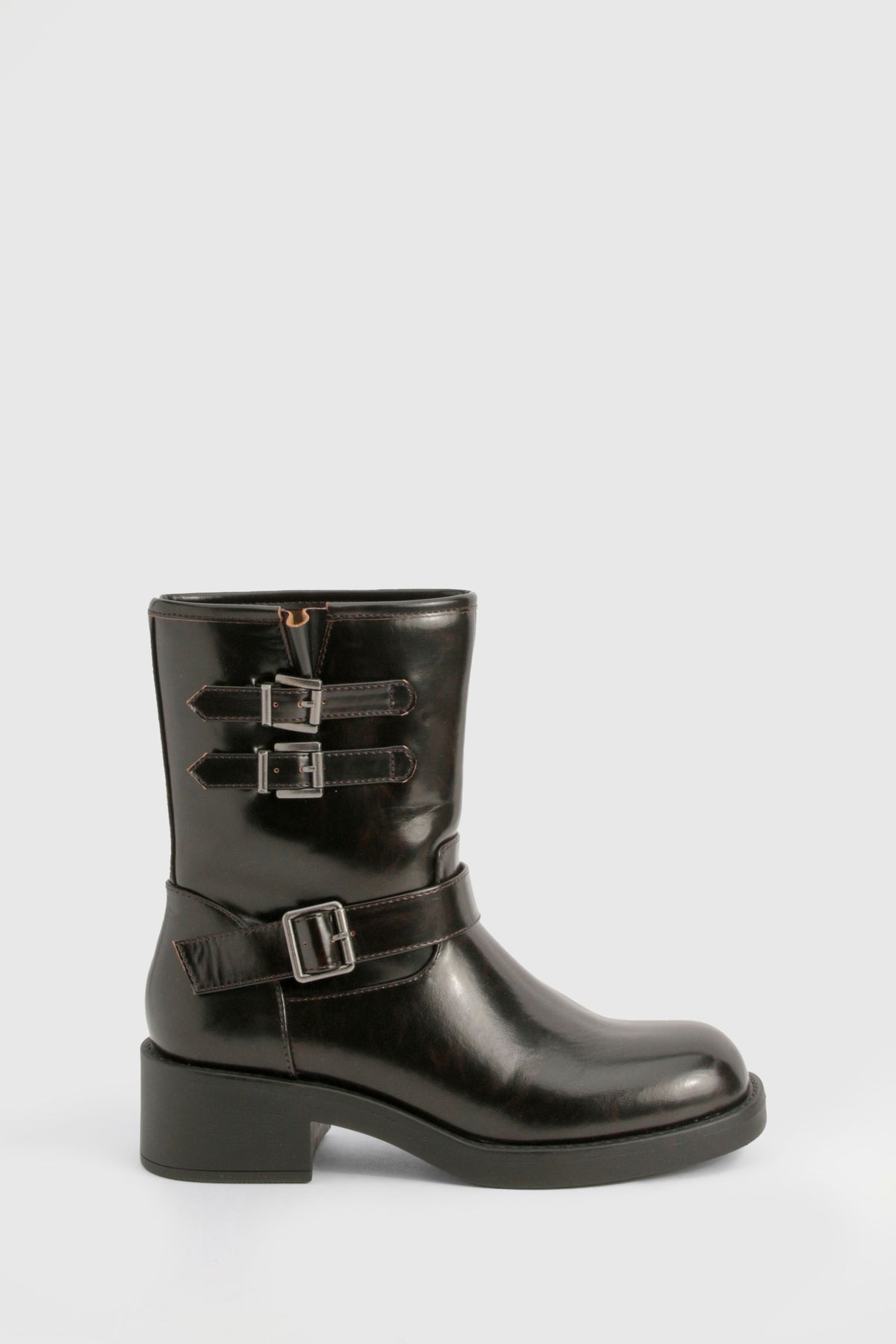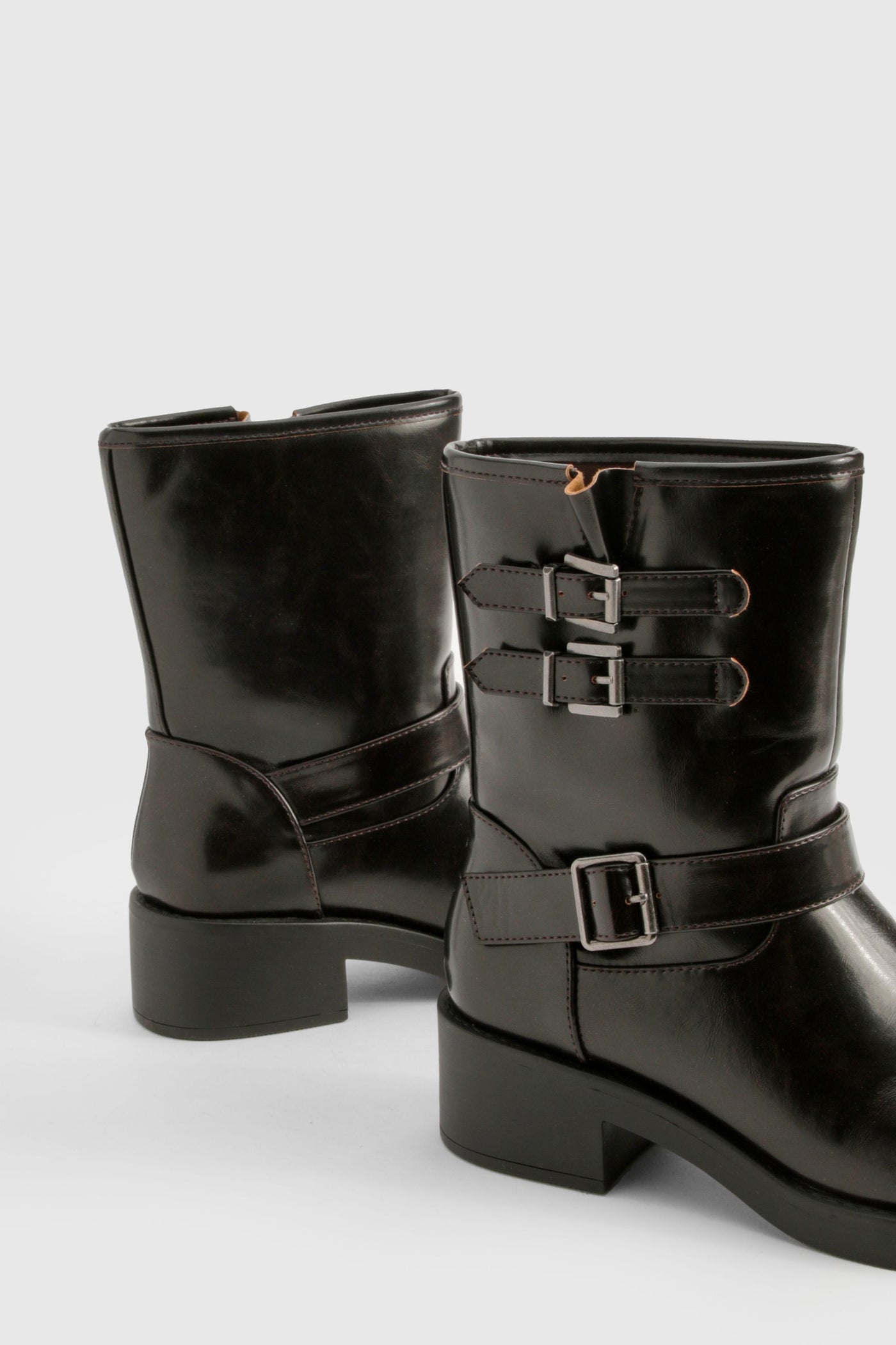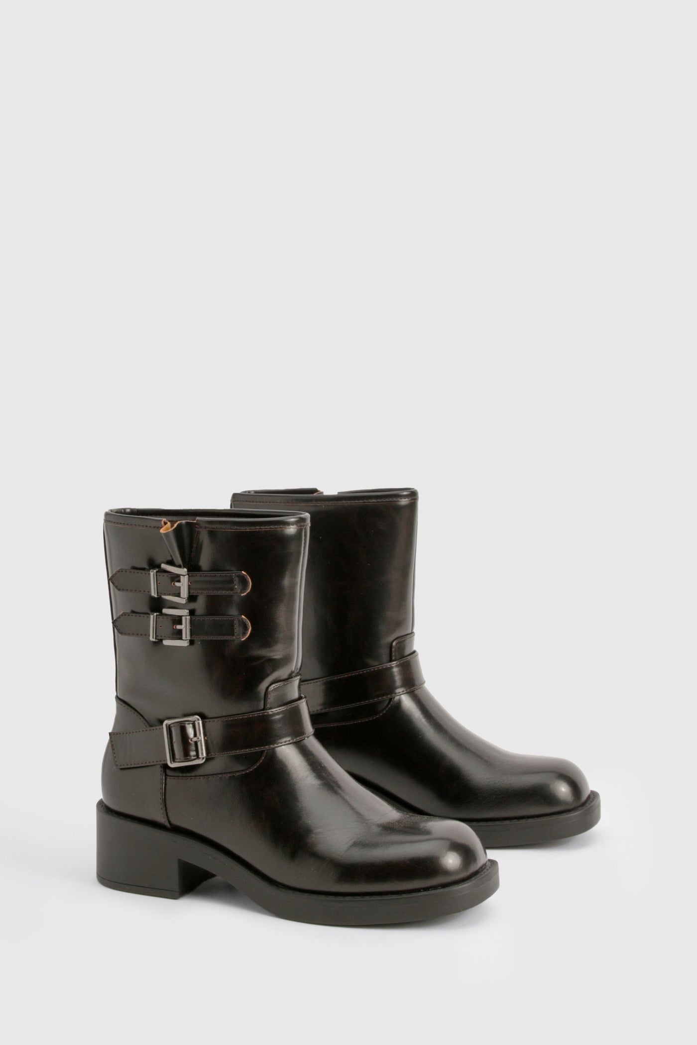 Step out in style with these edgy biker boots that blend vintage charm with modern attitude. Perfect for adding a touch of rebellion to your everyday looks, these boots are versatile enough to complement a range of outfits. Pair them with skinny jeans and a leather jacket for a classic rocker vibe, or contrast their tough aesthetic with a floaty floral dress for an unexpected twist. The mid-height heel offers just the right amount of lift without sacrificing comfort, making these boots ideal for long days out shopping or casual nights at the pub. Their durable construction ensures they'll be a staple in your wardrobe for seasons to come, ready to take you from family gatherings to impromptu gigs with effortless cool.Discover Vintage Style Buckle Detail Biker Boot available to buy online at us.boohoo.com. Available with quick delivery and easy return options. Shop now!Discover Vintage Style Buckle Detail Biker Boot available to buy online at us.boohoo.com. Available with quick delivery and easy return options. Shop now!