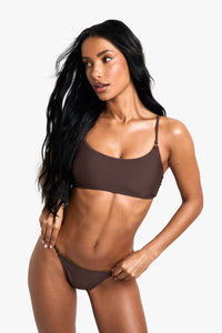 Sleek scoop neckline bikini top with adjustable thin straps for a customised fit