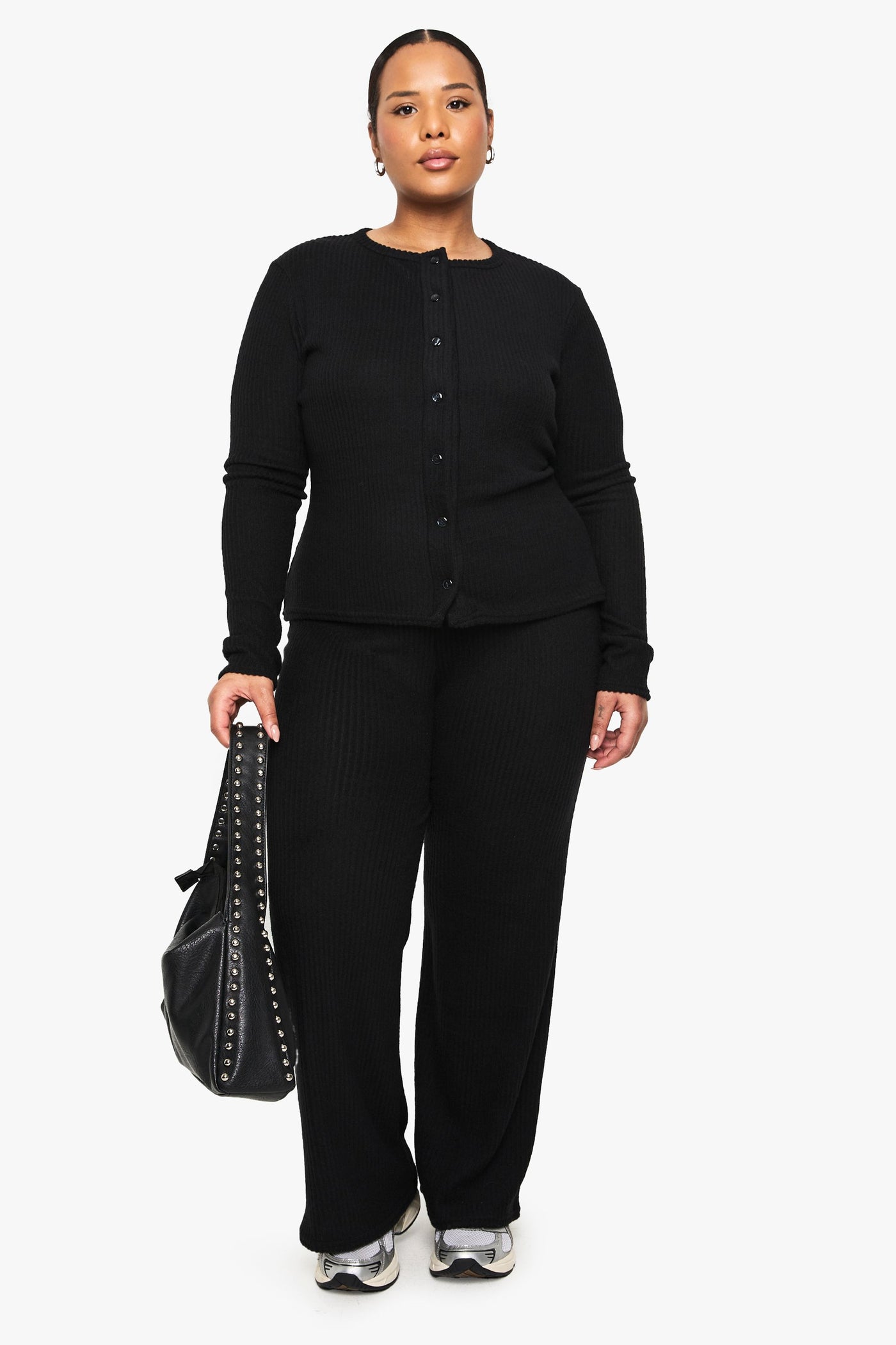 Embrace laid-back luxury with this plus-size ribbed cardigan and trouser co-ord from Boohoo. The soft, textured fabric offers both style and comfort, making it ideal for various casual occasions. The button-up cardigan allows for versatile styling options, whether worn open over a cami or buttoned up as a top. Pair with the matching wide-leg trousers for a coordinated look that's both chic and comfortable. This set is perfect for family gatherings, weekend brunches, or relaxed evenings out. Style with trainers for a casual daytime look, or dress it up with heeled boots and statement jewellery for a night on the town. The stretchy fabric ensures a flattering fit that moves with you, while the ribbed texture adds a touch of sophistication to this effortlessly cool ensemble.Discover Plus Soft Rib Cardigan And Elasticated Trouser Set available to buy online at us.boohoo.com. Available with quick delivery and easy return options. Shop now!Discover Plus Soft Rib Cardigan And Elasticated Trouser Set available to buy online at us.boohoo.com. Available with quick delivery and easy return options. Shop now!