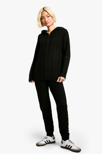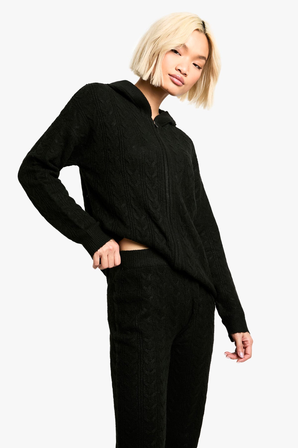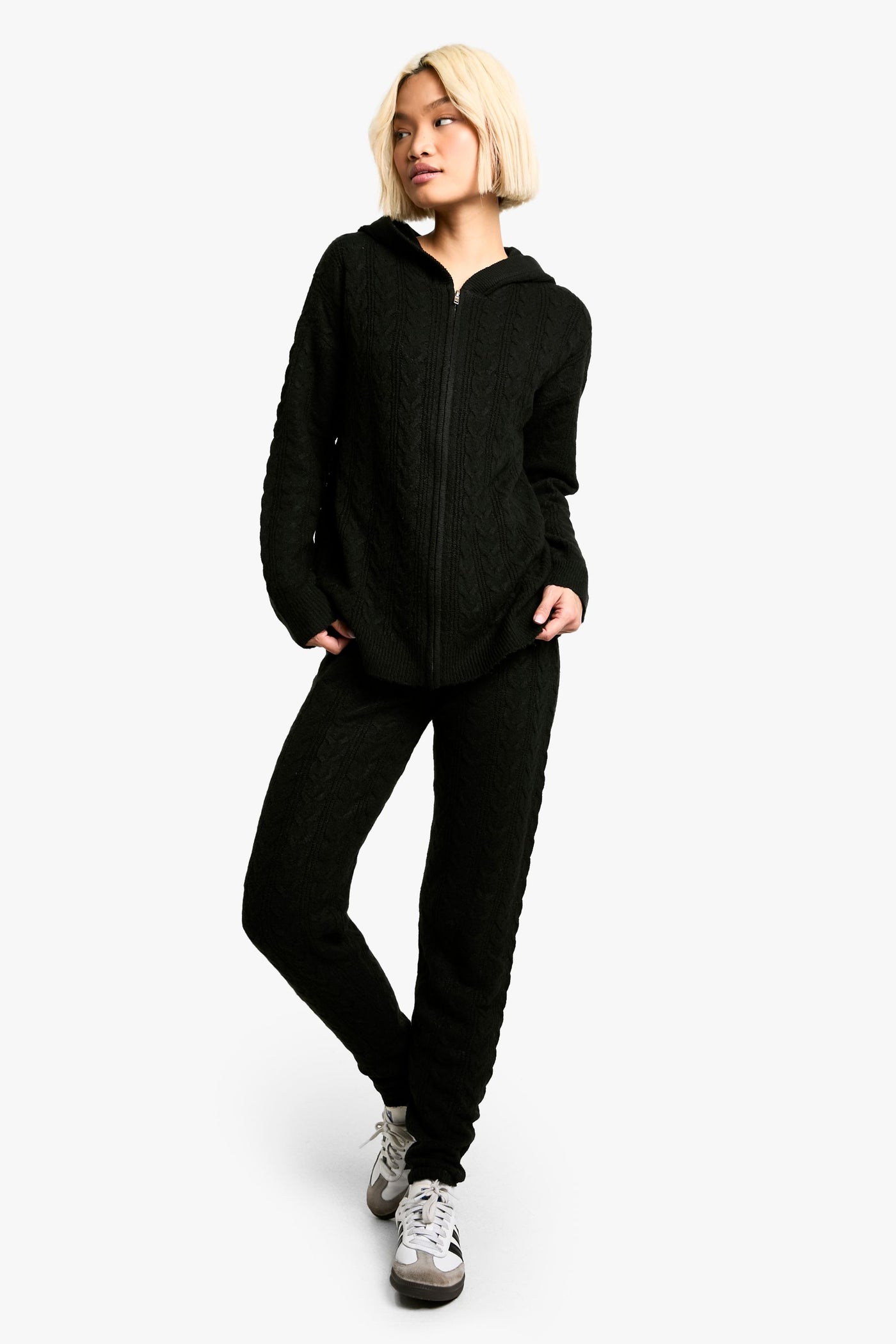 Embrace laid-back luxury with this cable knit tracksuit from Boohoo. The soft, textured fabric offers both comfort and style, perfect for those lazy days at home or casual outings. The hooded top with a full-length zip allows for easy layering, while the matching trousers ensure a coordinated look. Style this set with white trainers for a fresh, sporty vibe, or pair the top with your favourite jeans for a more versatile ensemble. Ideal for weekend brunches, casual meet-ups with friends, or cosy nights in, this tracksuit is a must-have for the fashion-forward woman who values both style and comfort. The relaxed fit and soft fabric make it an excellent choice for travel or as loungewear, proving that comfort doesn't have to compromise on style.Discover Soft Cable Zip Through Hoody Knitted Tracksuit available to buy online at us.boohoo.com. Available with quick delivery and easy return options. Shop now!Discover Soft Cable Zip Through Hoody Knitted Tracksuit available to buy online at us.boohoo.com. Available with quick delivery and easy return options. Shop now!