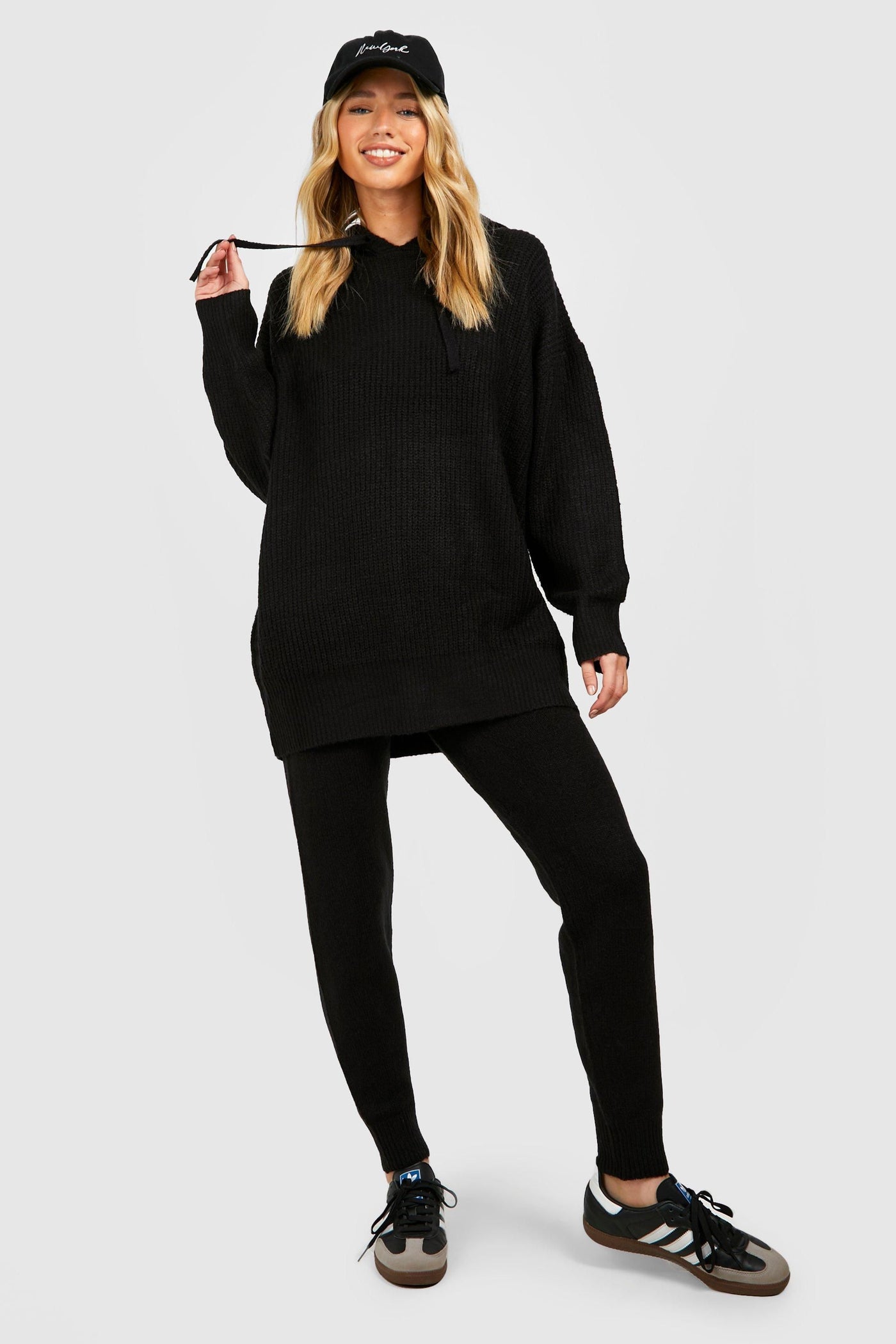 Cosy soft knit co-ord set featuring hoodie and trousers