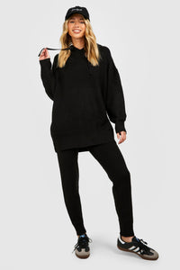 Embrace comfort without compromising on style with this soft knit hoodie co-ord from Boohoo. The oversized hoodie paired with tapered trousers creates a balanced silhouette that's both trendy and relaxed. Ideal for casual outings, this set can be dressed up or down effortlessly. Pair with trainers and a cap for a laid-back weekend look, or style the hoodie with jeans and ankle boots for a chic coffee run ensemble. The versatility of this co-ord makes it a must-have for your wardrobe, perfect for everything from lounging at home to casual meet-ups with friends. The soft fabric ensures all-day comfort, while the ribbed detailing adds a touch of texture. Whether worn together or as separates, this co-ord set offers endless styling possibilities for the fashion-forward woman who values both comfort and trend-setting looks.Discover Soft Knit Hoodie Co-ord available to buy online at us.boohoo.com. Available with quick delivery and easy return options. Shop now!Discover Soft Knit Hoodie Co-ord available to buy online at us.boohoo.com. Available with quick delivery and easy return options. Shop now!