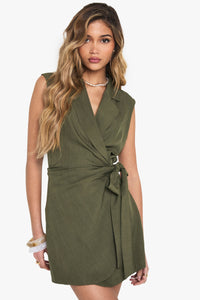 Sleeveless wrap blazer dress with sophisticated lapel detailing