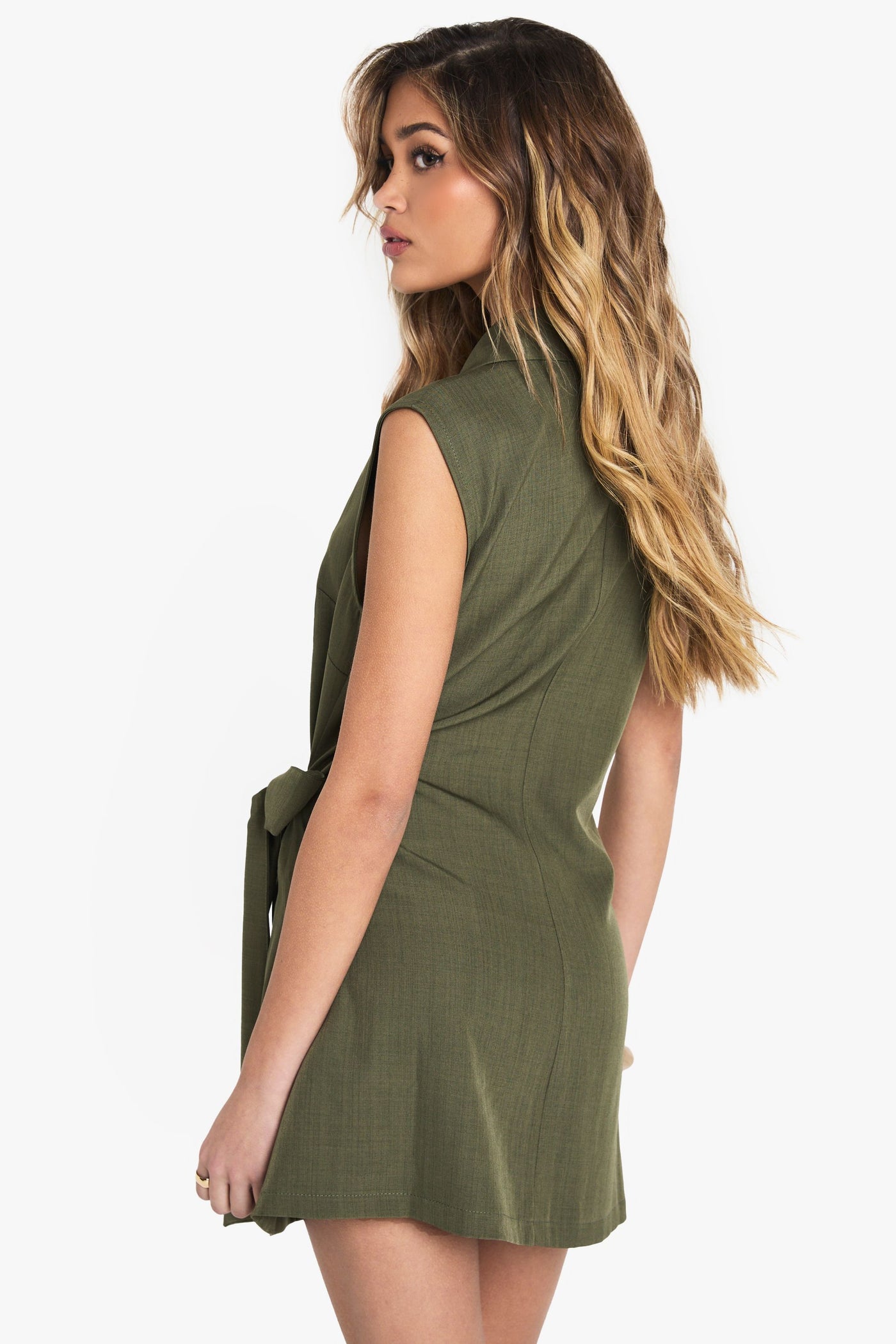Make a statement with this striking sleeveless wrap blazer dress that combines tailored sophistication with contemporary flair. The structured lapels and draped detailing create a figure-enhancing silhouette that's both polished and fashion-forward. Style with strappy heels and delicate jewellery for evening drinks, or dress down with white trainers and a crossbody bag for daytime outings. The side tie fastening adds a customisable fit whilst creating visual interest. This versatile piece transitions effortlessly from office to cocktail bar-simply switch your accessories to transform your look. The linen-look fabric offers a textural element that works brilliantly across seasons, making this Boohoo dress a wardrobe essential for the fashion-conscious woman who demands style and versatility from her going-out collection.Discover Linen Look Wrap Drape Front Sleeveless Blazer Dress available to buy online at us.boohoo.com. Available with quick delivery and easy return options. Shop now!Discover Linen Look Wrap Drape Front Sleeveless Blazer Dress available to buy online at us.boohoo.com. Available with quick delivery and easy return options. Shop now!