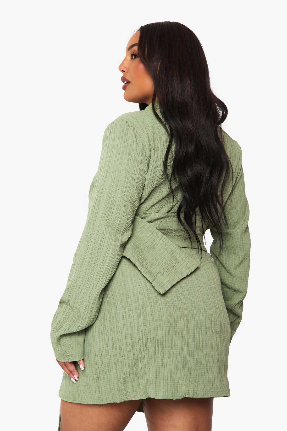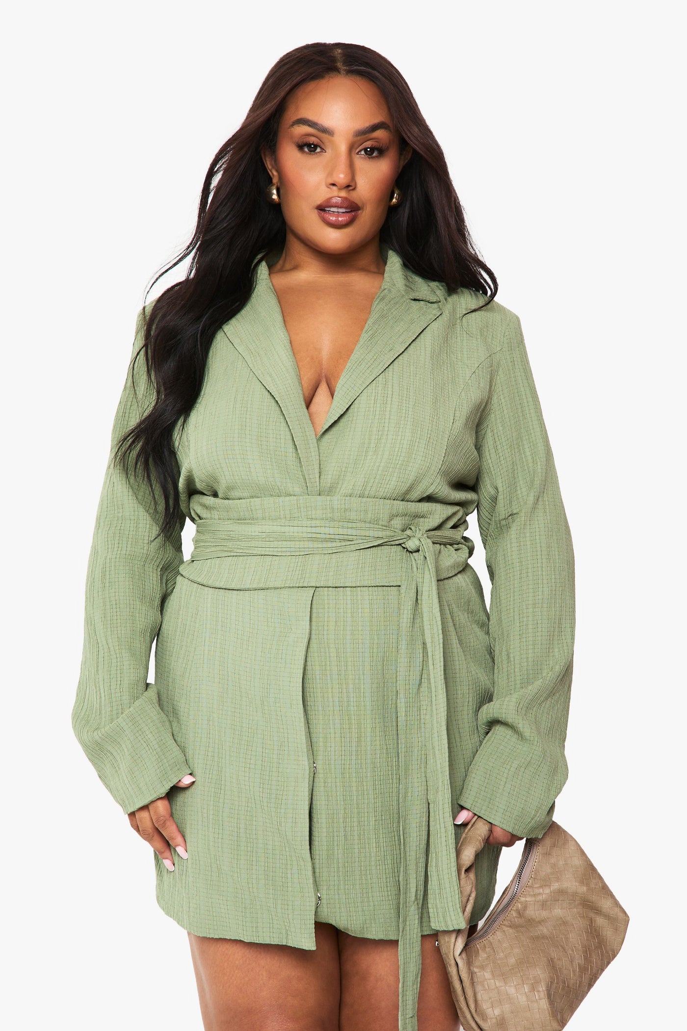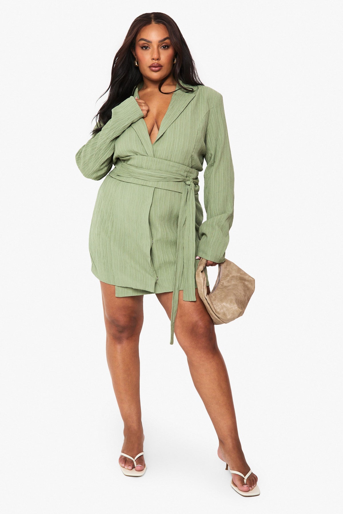 Plus Textured Tailored Belt Detail Blazer dress