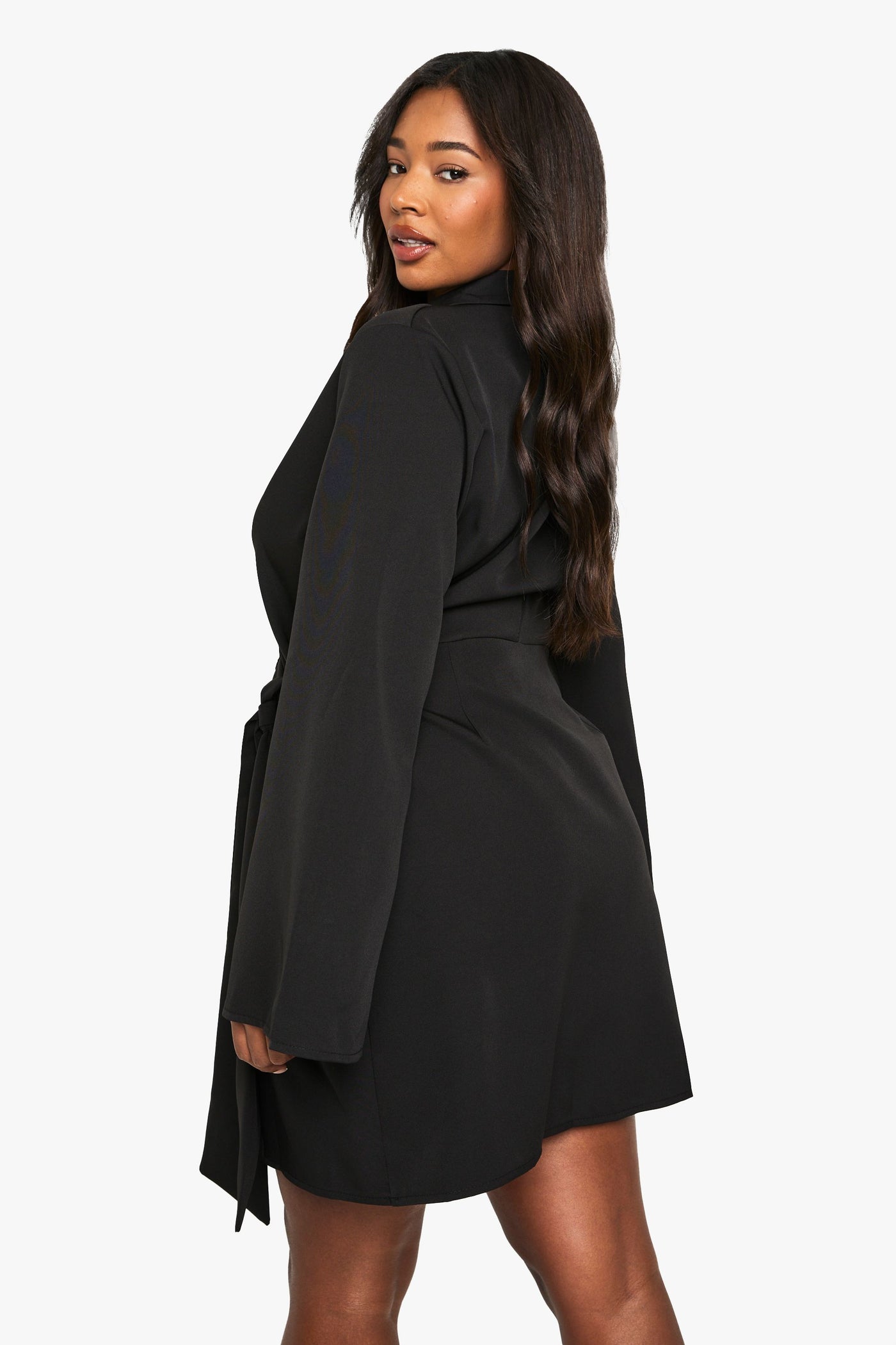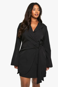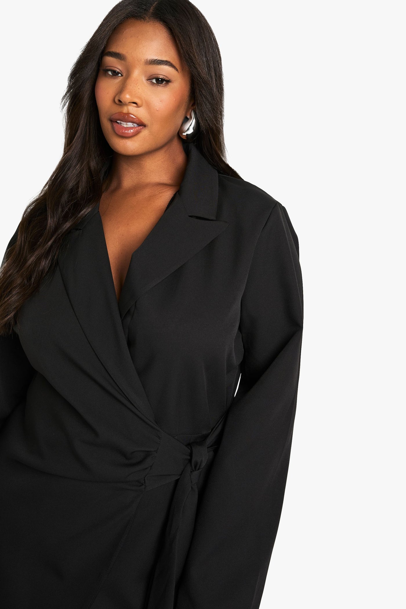 Make a bold statement with this striking blazer dress, perfect for the fashion-forward woman who loves to turn heads. The wrap-style design creates a flattering silhouette, while the tie belt allows you to customise the fit to your liking. Ideal for a night out on the town, this dress effortlessly transitions from after-work drinks to dancing the night away. Style it with strappy heels and statement earrings for a glamorous look, or dress it down with ankle boots and a clutch for a more casual vibe. The mini length shows off your legs, while the long sleeves add a touch of sophistication. Whether you're meeting friends at a trendy bar or heading to a club, this blazer dress is sure to become your go-to piece for unforgettable nights out.Discover Plus Tie Waist Tailored Blazer Dress available to buy online at us.boohoo.com. Available with quick delivery and easy return options. Shop now!Discover Plus Tie Waist Tailored Blazer Dress available to buy online at us.boohoo.com. Available with quick delivery and easy return options. Shop now!
