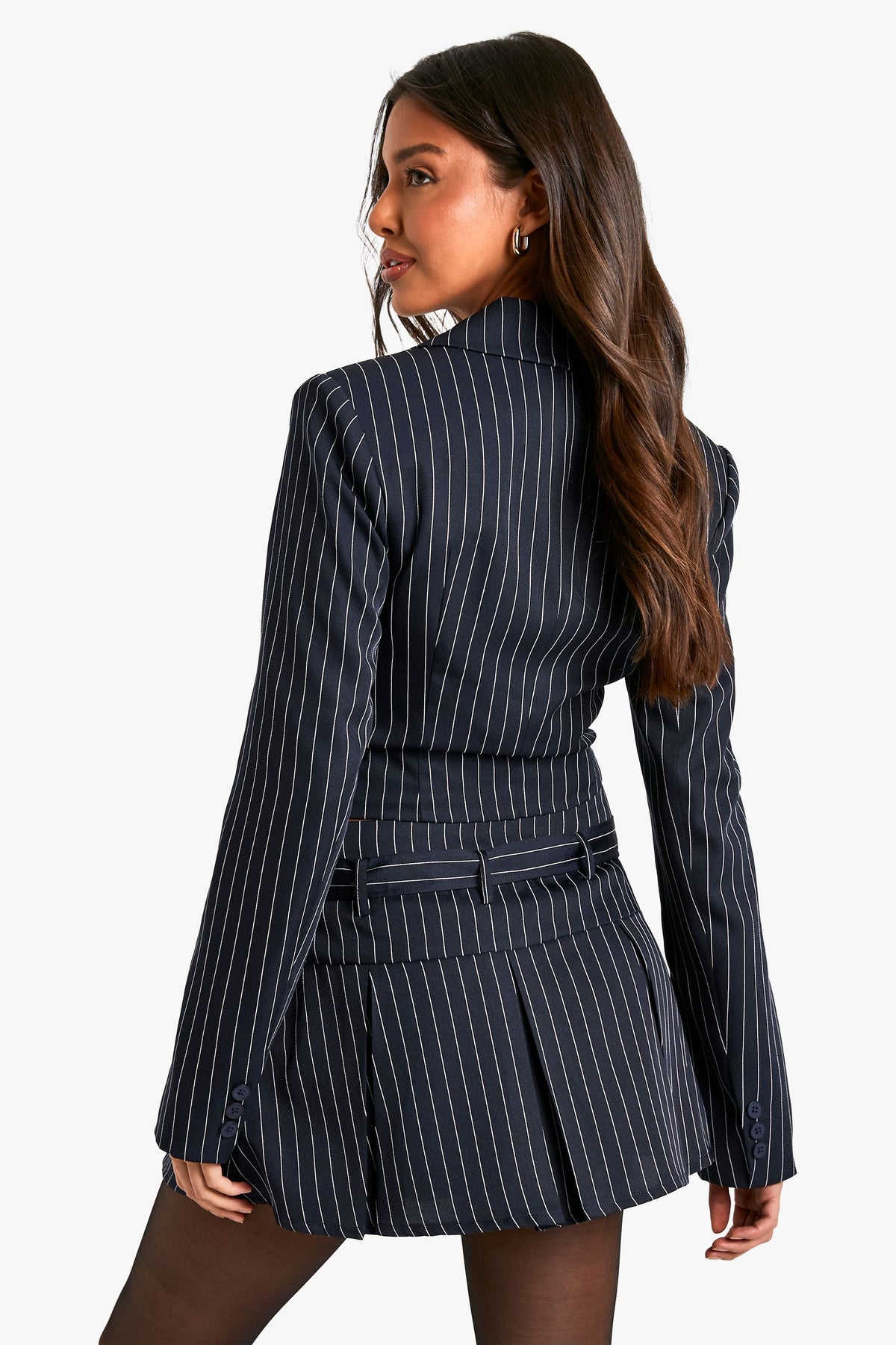 Make a bold statement with this kurzer Nadelstreifen Korsett-Blazer from Boohoo. This versatile piece effortlessly bridges the gap between casual cool and polished elegance. The corset-inspired design creates a figure-hugging silhouette, while the classic pinstripe pattern adds a touch of timeless sophistication. Style it with the matching mini skirt and chunky boots for an edgy daytime look, or pair it with tailored trousers and heels for a more refined ensemble. Perfect for everything from casual brunches to evening drinks with friends, this blazer is a must-have addition to any fashion-forward wardrobe. Its cropped length makes it ideal for showcasing high-waisted bottoms, allowing you to create a variety of on-trend outfits. Embrace your inner fashionista and let this striking blazer be the centrepiece of your next head-turning look.Discover Pinstripe Corset Cropped Blazer available to buy online at us.boohoo.com. Available with quick delivery and easy return options. Shop now!Discover Pinstripe Corset Cropped Blazer available to buy online at us.boohoo.com. Available with quick delivery and easy return options. Shop now!
