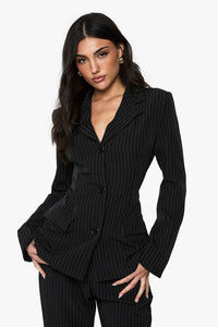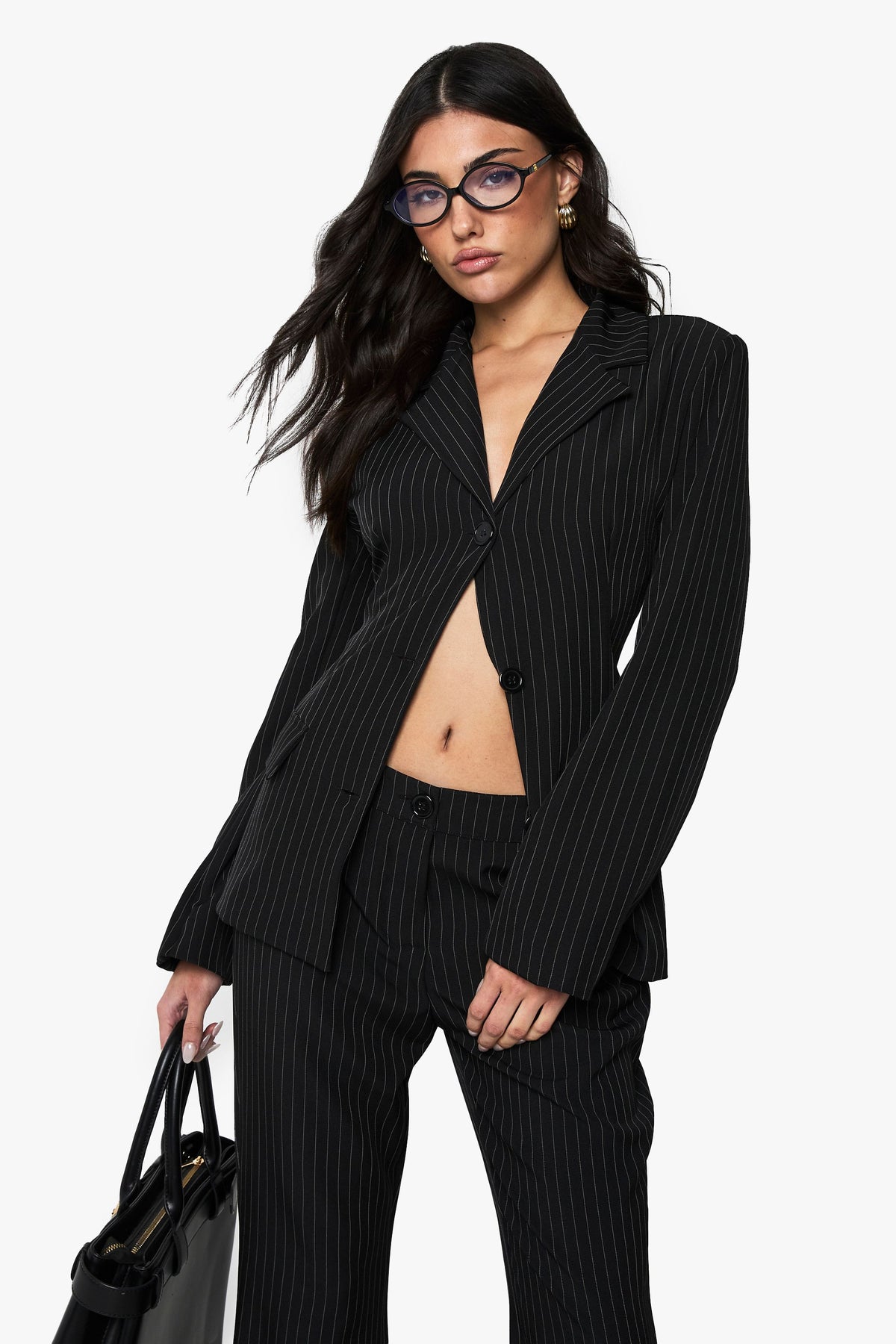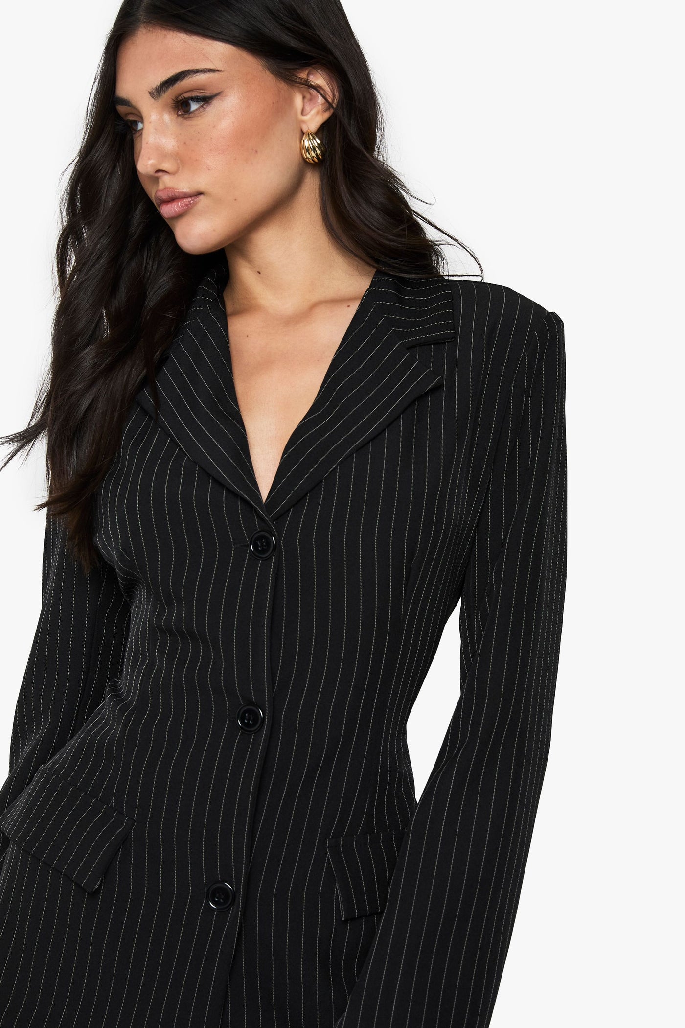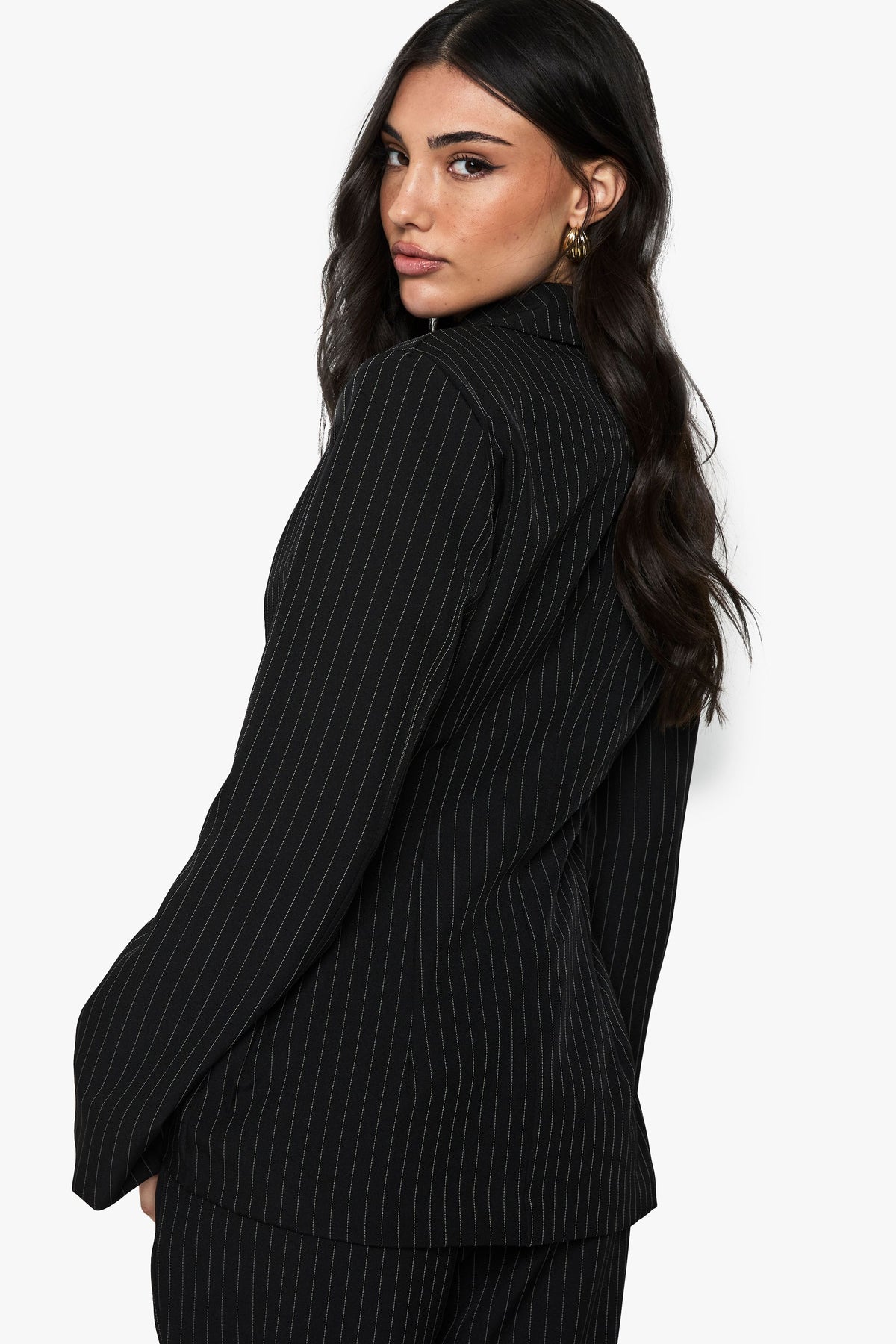 Make a bold statement with this structured pinstripe blazer from Boohoo. Perfect for the fashion-forward woman who wants to stand out, this blazer combines classic tailoring with a contemporary edge. The slim fit silhouette sculpts your figure, while the pinstripe pattern adds a touch of sophistication. Pair it with matching trousers for a coordinated suit look, or throw it over a little black dress to add some power to your night-out ensemble. For a more casual vibe, style it with high-waisted jeans and a crop top. Whether you're heading to the office, meeting friends for drinks, or hitting the town, this versatile blazer will ensure you're always dressed to impress. Its ability to transition seamlessly from day to night makes it a must-have piece for the busy, style-conscious woman.Discover Pinstripe Structured Tailored Blazer available to buy online at us.boohoo.com. Available with quick delivery and easy return options. Shop now!Discover Pinstripe Structured Tailored Blazer available to buy online at us.boohoo.com. Available with quick delivery and easy return options. Shop now!