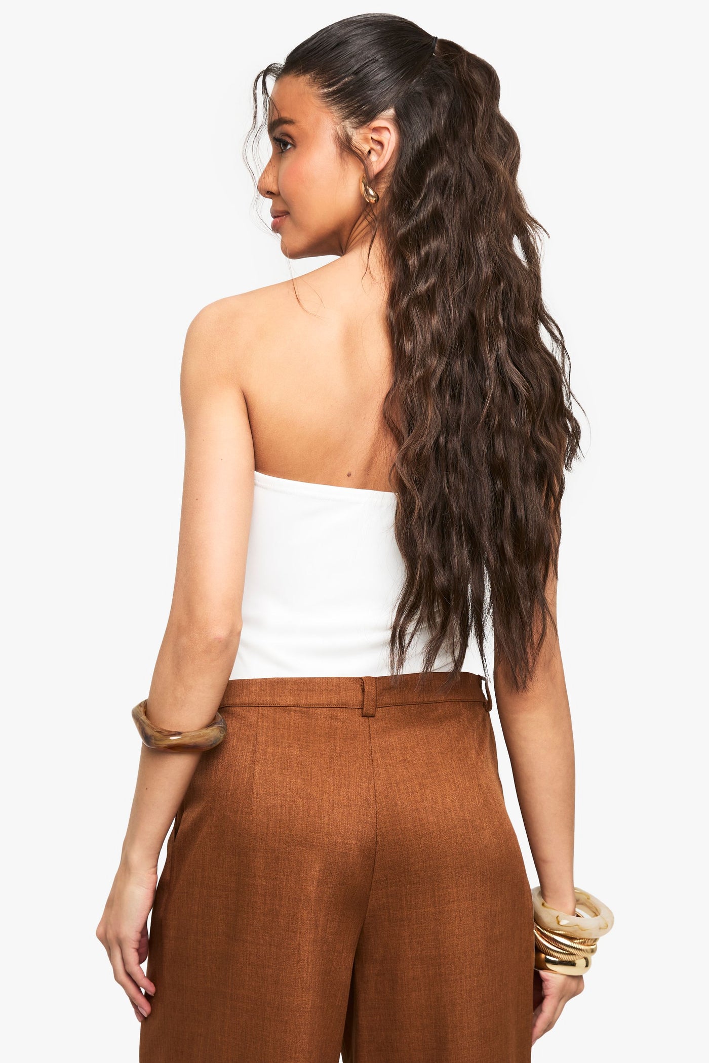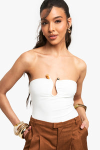 Make a statement with this double-layered bandeau body, designed to showcase your shoulders whilst creating a sleek foundation for any going-out ensemble. The distinctive front notch detail with metallic accent adds a subtle touch of glamour to this otherwise minimalist piece. Style with wide-leg trousers and statement jewellery for an evening at the cocktail bar, or pair with a tailored blazer and heels when meeting friends for drinks. The soft touch slinky fabric offers comfortable wear throughout the night, whilst the form-fitting silhouette flatters your figure. This versatile body works brilliantly as part of a layered look or as a standout piece on its own - simply customise with your favourite accessories to reflect your personal style. Perfect for the fashion-forward woman who values both trend-led design and practical comfort.Discover Double Layered Slinky Trim Detail Bandeau Bodysuit available to buy online at us.boohoo.com. Available with quick delivery and easy return options. Shop now!Discover Double Layered Slinky Trim Detail Bandeau Bodysuit available to buy online at us.boohoo.com. Available with quick delivery and easy return options. Shop now!