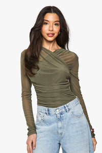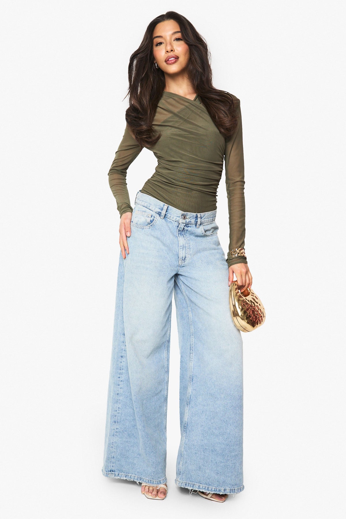 Make a statement on your next night out with this captivating mesh bodysuit from Boohoo. The distinctive cross-over front design creates visual interest whilst the semi-sheer sleeves add a touch of allure to your ensemble. As seen on our model, pair with wide-leg denim jeans for a balanced silhouette that contrasts the fitted top with relaxed bottoms. Add statement jewellery and a mini handbag to complete the look. Perfect for drinks with the girls or dancing the night away, this bodysuit transitions effortlessly from casual bar settings to high-energy nightclubs. The form-fitting style moulds to your shape whilst the ruched detailing ensures a flattering fit for all body types. A must-have piece for the fashion-forward woman who isn't afraid to turn heads.Discover Mesh Cross Over Bodysuit available to buy online at us.boohoo.com. Available with quick delivery and easy return options. Shop now!Discover Mesh Cross Over Bodysuit available to buy online at us.boohoo.com. Available with quick delivery and easy return options. Shop now!