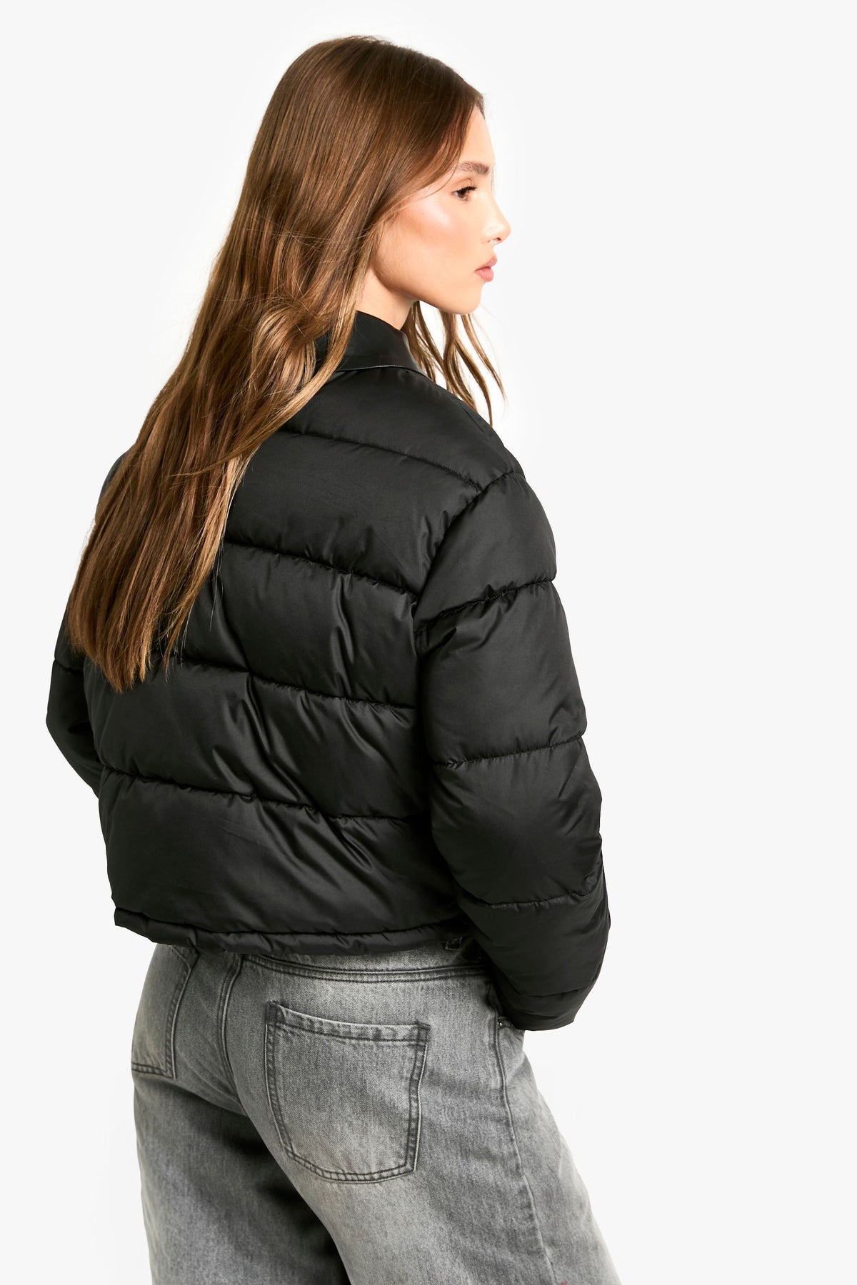 Make a statement in this eye-catching quilted jacket from Boohoo. The contrasting collar adds a touch of sophistication to the casual silhouette, making it a versatile piece for your wardrobe. Layer it over a cosy jumper and pair with wide-leg trousers for a trendy, off-duty look. The cropped length is ideal for showcasing high-waisted bottoms, while the front pockets offer practicality for your daily essentials. Perfect for casual outings or family gatherings, this jacket can be dressed up or down with ease. Throw it on over a simple white tee and your favourite jeans for an effortlessly cool ensemble, or style it with a midi dress and trainers for a chic weekend brunch look. The quilted design not only adds visual interest but also provides warmth for those chilly autumn days.Discover Faux Leather Contrast Collar Puffer Jacket available to buy online at us.boohoo.com. Available with quick delivery and easy return options. Shop now!Discover Faux Leather Contrast Collar Puffer Jacket available to buy online at us.boohoo.com. Available with quick delivery and easy return options. Shop now!