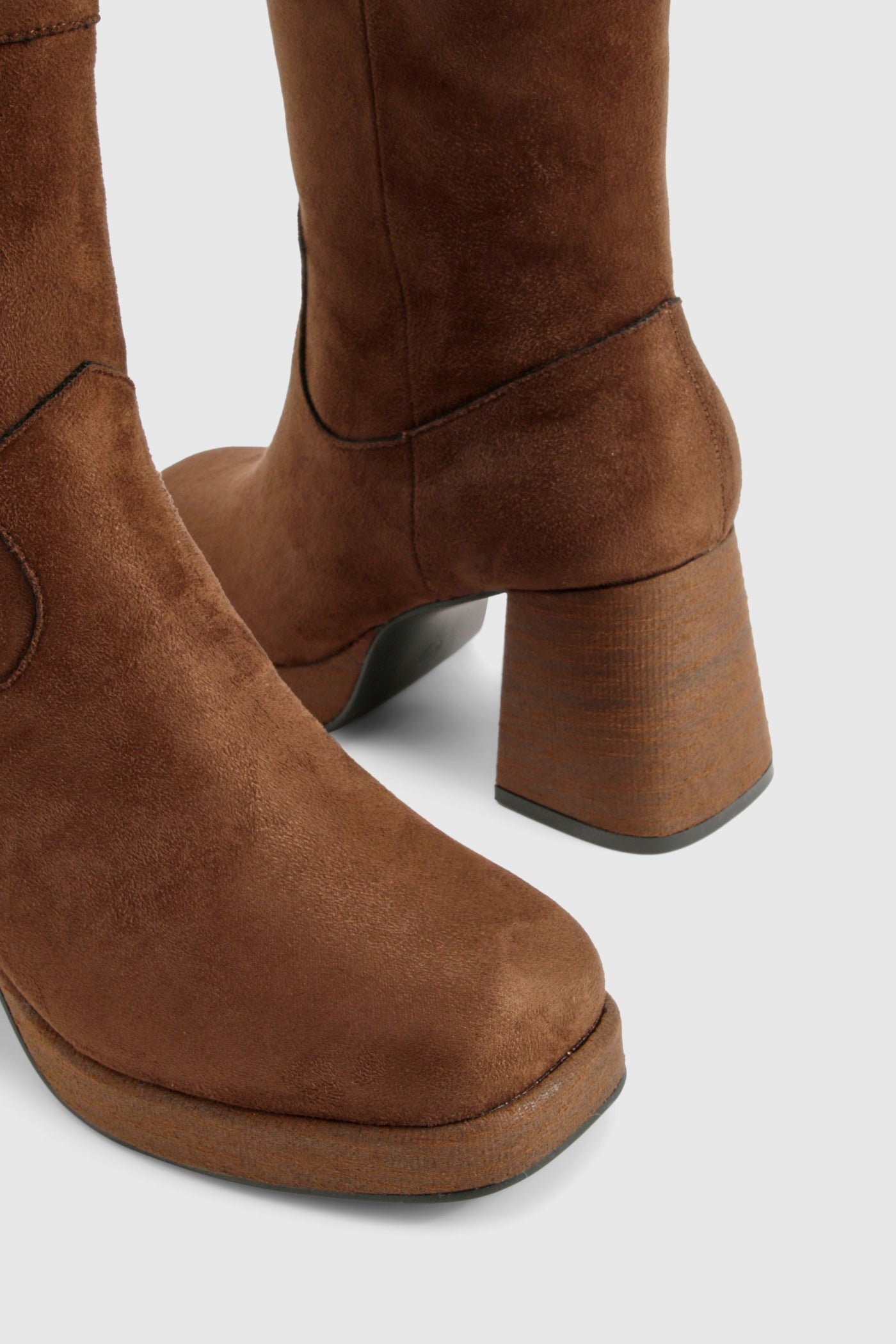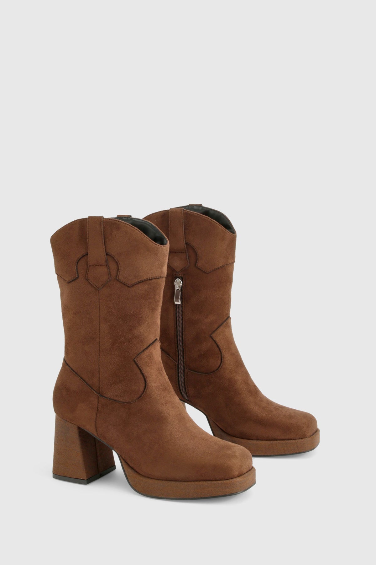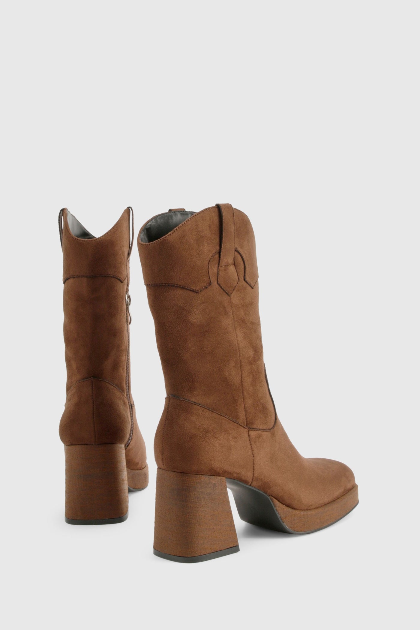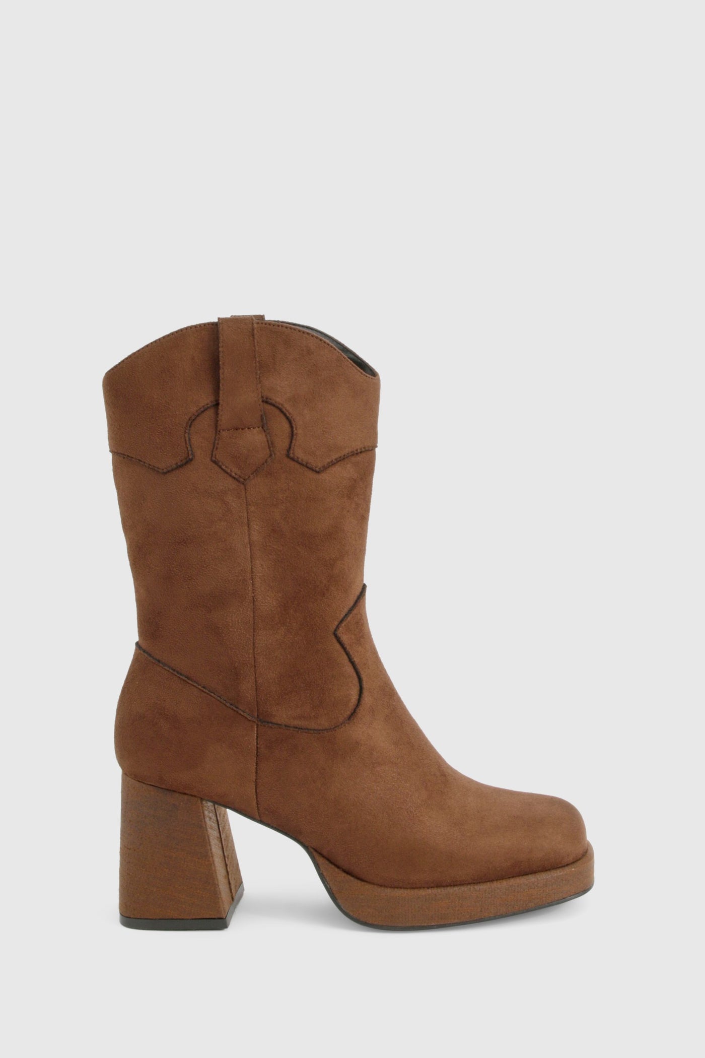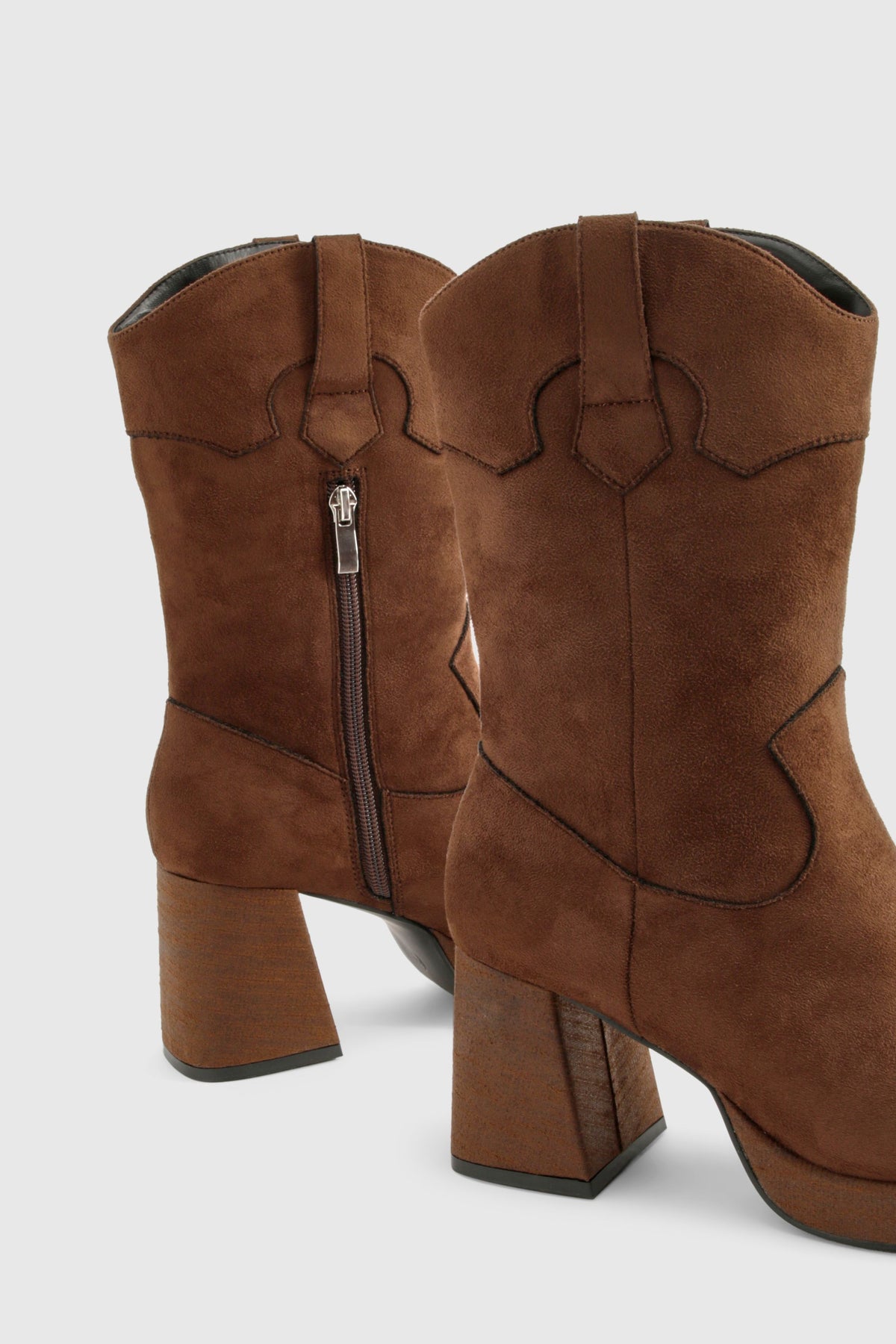 Step into style with these versatile platform ankle boots. The western-inspired stitching adds a touch of rustic charm, while the chunky block heel provides both height and stability. Perfect for the fashion-forward trendsetter, these boots can effortlessly transition from day to night. Pair them with skinny jeans and an oversized jumper for a casual daytime look, or dress them up with a flowy midi skirt and leather jacket for an evening out. The mid-height heel ensures comfort for all-day wear, making these boots ideal for everything from shopping trips to casual gatherings with friends. The faux suede finish gives a luxe look without the high-end price tag, embodying Boohoo's commitment to accessible fashion for the young, social butterfly who wants to stay on-trend without breaking the bank.Discover Faux Suede Platform Wooden Heel Detail Ankle Boot available to buy online at us.boohoo.com. Available with quick delivery and easy return options. Shop now!Discover Faux Suede Platform Wooden Heel Detail Ankle Boot available to buy online at us.boohoo.com. Available with quick delivery and easy return options. Shop now!