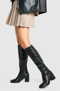 Step out in style with these essential knee-high boots, perfect for the fashion-forward woman who values both comfort and trend-setting looks. The low block heel offers stability and ease of movement, making these boots ideal for long days out and about. Pair them with a pleated mini skirt and an oversized leather jacket for a chic contrast of textures and proportions. These versatile boots transition seamlessly from day to night, complementing everything from casual jeans and jumpers to flowy dresses. Ideal for family gatherings, shopping trips with friends, or casual dates, these boots will quickly become your go-to footwear for the season. Their simple yet sophisticated design allows for endless styling possibilities, ensuring you'll always step out feeling confident and on-trend.Discover Low Block Basic Pull On Knee High Boots available to buy online at us.boohoo.com. Available with quick delivery and easy return options. Shop now!Discover Low Block Basic Pull On Knee High Boots available to buy online at us.boohoo.com. Available with quick delivery and easy return options. Shop now!