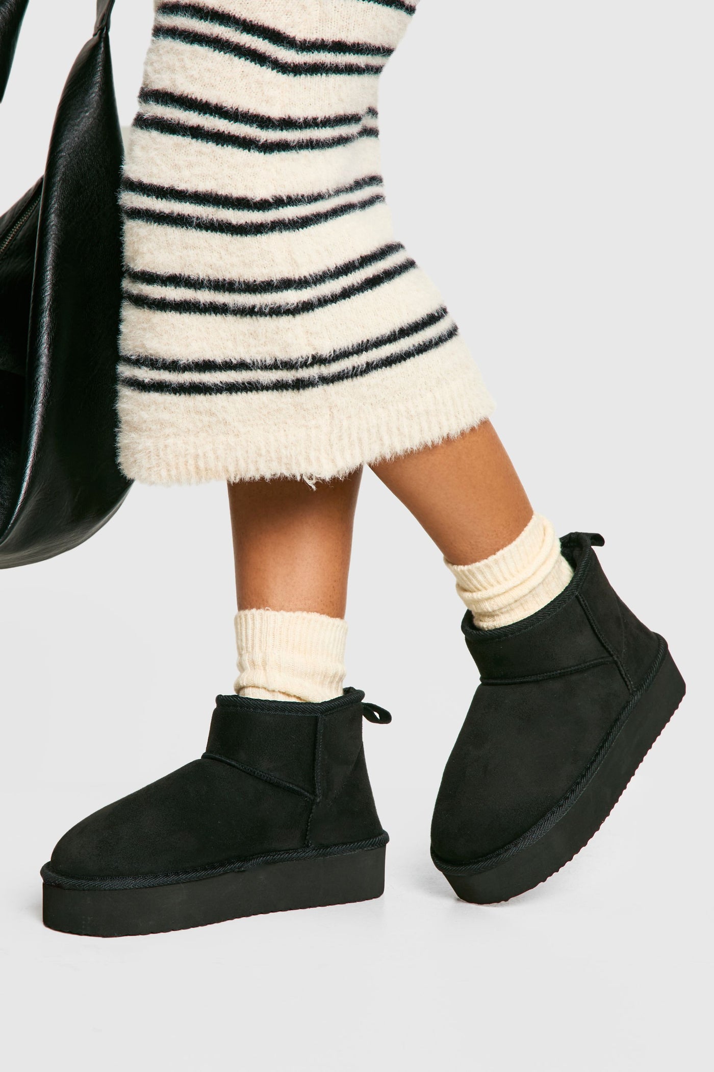 Step into style and comfort with these must-have platform ankle boots from Boohoo. Perfect for the fashion-forward woman who values both trend and practicality, these boots offer a cosy embrace for your feet while adding a touch of edge to any outfit. The chunky platform sole not only provides extra height but also ensures stability and comfort for all-day wear. Pair them with your favourite skinny jeans and an oversized jumper for a chic casual look, or dress them up with a flowy midi dress and leather jacket for a night out with friends. Versatile enough for family gatherings or casual outings, these boots are sure to become your go-to footwear for the season. The synthetic suede upper adds a touch of luxury, while the easy pull-on style with a handy rear tab means you can slip them on in seconds. Embrace the latest fashion trends without compromising on comfort with these stylish and practical ankle boots.Discover Platform Cosy Ankle Boots available to buy online at us.boohoo.com. Available with quick delivery and easy return options. Shop now!Discover Platform Cosy Ankle Boots available to buy online at us.boohoo.com. Available with quick delivery and easy return options. Shop now!