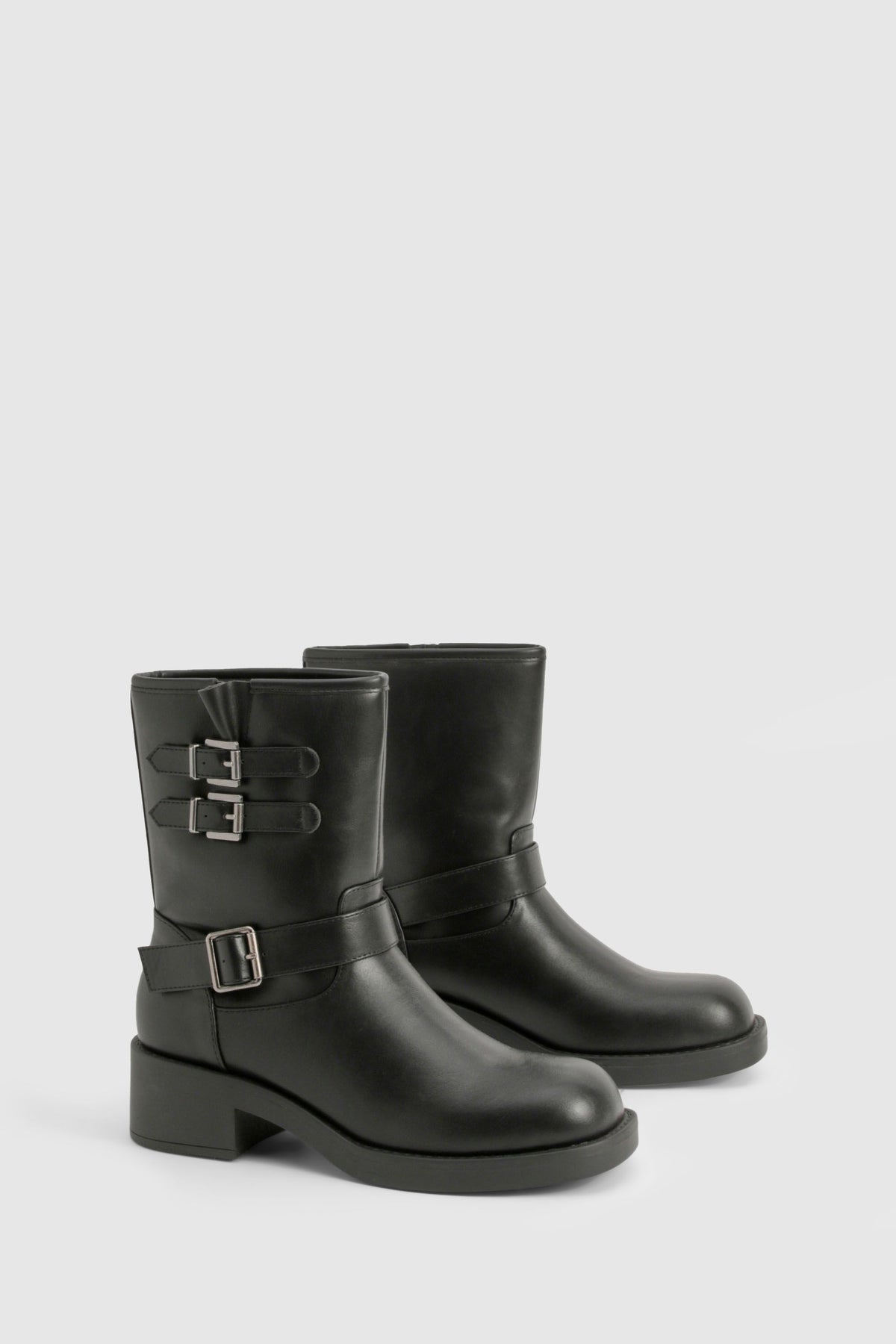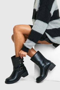 Step into edgy sophistication with these striking biker boots. The vintage-style buckle detailing adds a touch of rebellious charm, while the mid-height heel offers the perfect balance of style and comfort. These boots are a versatile addition to any wardrobe, effortlessly transitioning from day to night. Pair them with skinny jeans and an oversized jumper for a casual daytime look, or style them with a flowy midi dress and leather jacket for an evening out. The ankle-length design and adjustable straps ensure a snug fit, making these boots ideal for long walks through the city or dancing the night away. Whether you're heading to a family gathering or a night out with friends, these boots will keep you looking fashionable and feeling confident.Discover Vintage Style Buckle Detail Biker Boot available to buy online at us.boohoo.com. Available with quick delivery and easy return options. Shop now!Discover Vintage Style Buckle Detail Biker Boot available to buy online at us.boohoo.com. Available with quick delivery and easy return options. Shop now!