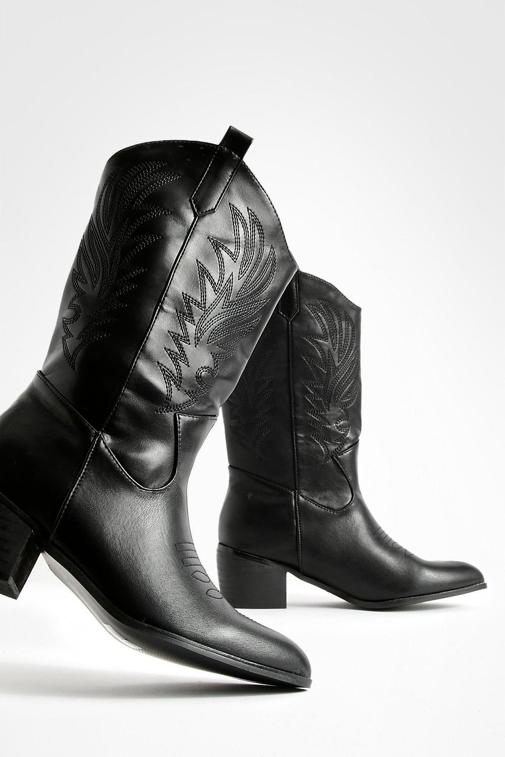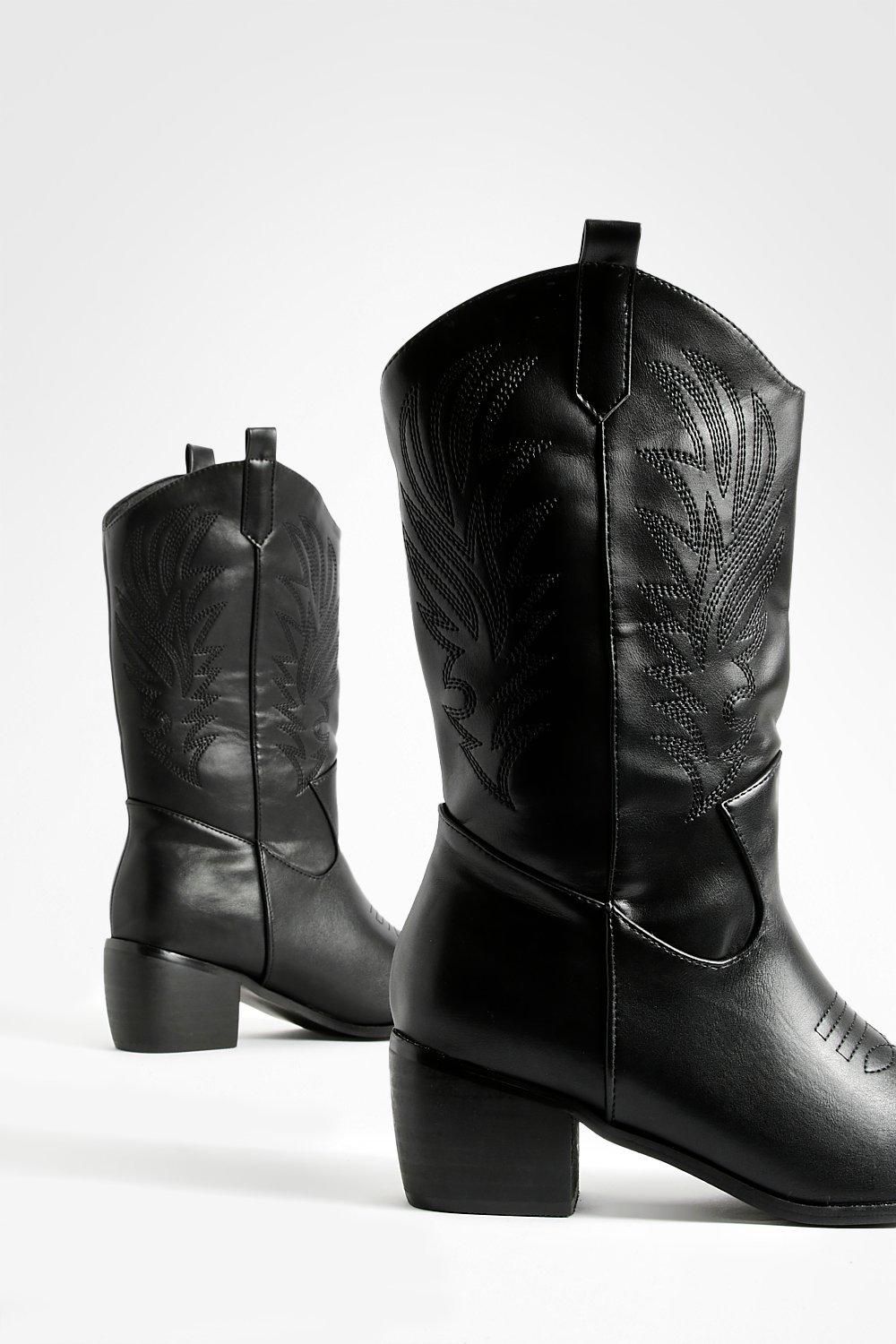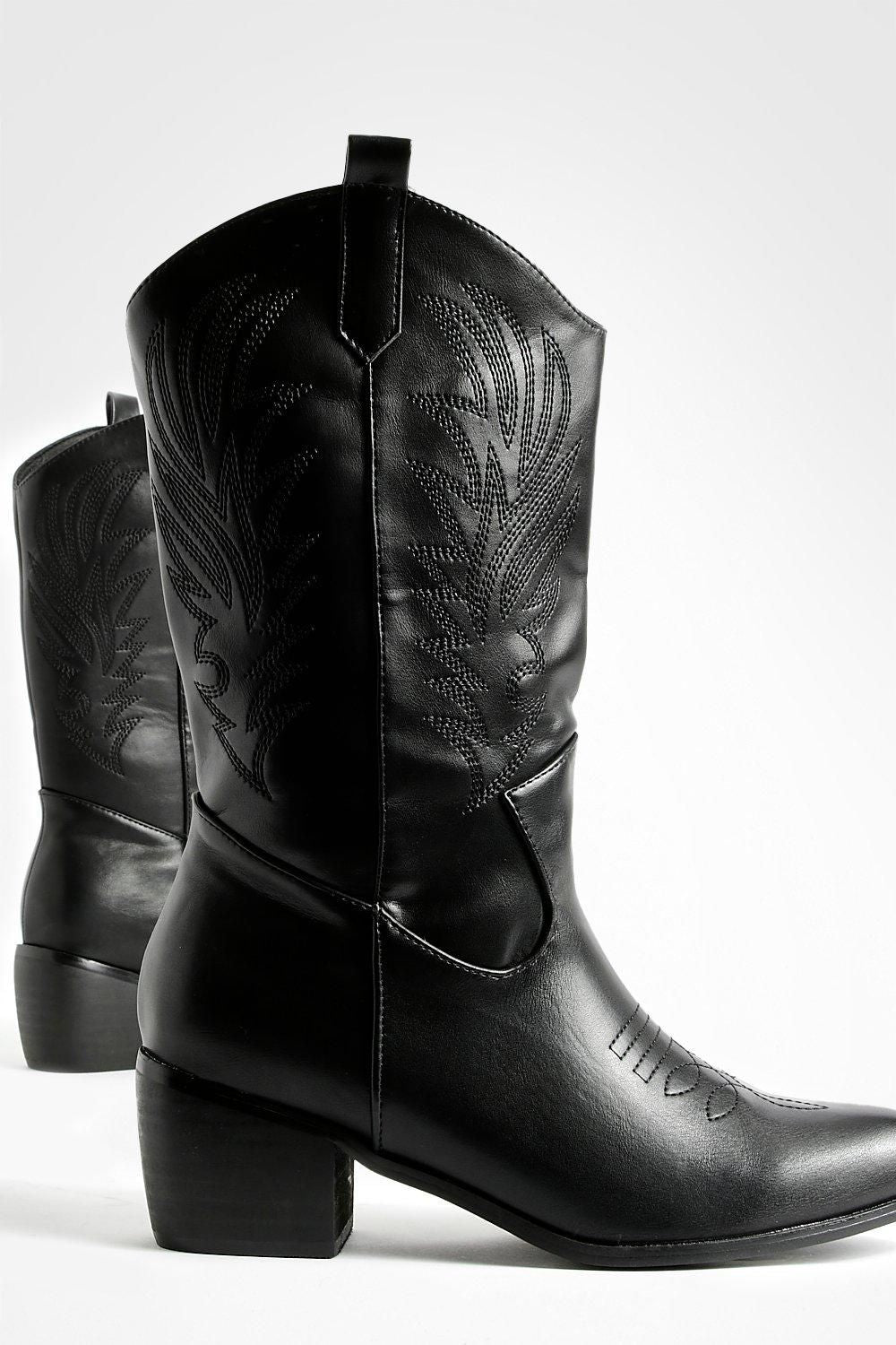 Step into the wild west with these eye-catching ankle cowboy boots. Boasting a wide fit for ultimate comfort, these boots are perfect for the fashion-forward woman who doesn't compromise on style or ease. The decorative tab detail and intricate stitching lend an authentic western flair, while the flat heel ensures you can strut your stuff from dawn till dusk. Ideal for casual outings, family gatherings, or adding a touch of cowgirl chic to your everyday look, these boots are a versatile addition to any wardrobe. Pair them with your favourite denim, flowing skirts, or even a cute summer dress to create countless head-turning ensembles. Whether you're heading to a festival, a day out shopping, or a relaxed evening with friends, these boots will keep you looking effortlessly cool and feeling comfortable all day long.Discover Wide Fit Tab Detail Ankle Cowboy Western Boots available to buy online at us.boohoo.com. Available with quick delivery and easy return options. Shop now!Discover Wide Fit Tab Detail Ankle Cowboy Western Boots available to buy online at us.boohoo.com. Available with quick delivery and easy return options. Shop now!