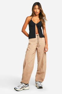 Embrace the laid-back chic of these cargo trousers, perfect for the fashion-forward woman who values both style and comfort. The wide-leg design offers a contemporary twist on a classic silhouette, while the cargo pockets add a functional yet trendy element. Pair these trousers with a cropped vest top and trainers for an effortlessly cool daytime look. For a more polished ensemble, team with a fitted blouse and ankle boots. The drawstring waist ensures a customisable fit, making these trousers ideal for all-day wear. Whether you're heading to a casual lunch with friends or running errands in the city, these versatile trousers will keep you looking stylish and feeling comfortable. The relaxed fit through the hips and thighs creates a flattering silhouette that's perfect for various body types, embodying Boohoo's commitment to inclusivity and fashion for all.Discover Toggle Waist Cargo Trouser available to buy online at us.boohoo.com. Available with quick delivery and easy return options. Shop now!Discover Toggle Waist Cargo Trouser available to buy online at us.boohoo.com. Available with quick delivery and easy return options. Shop now!