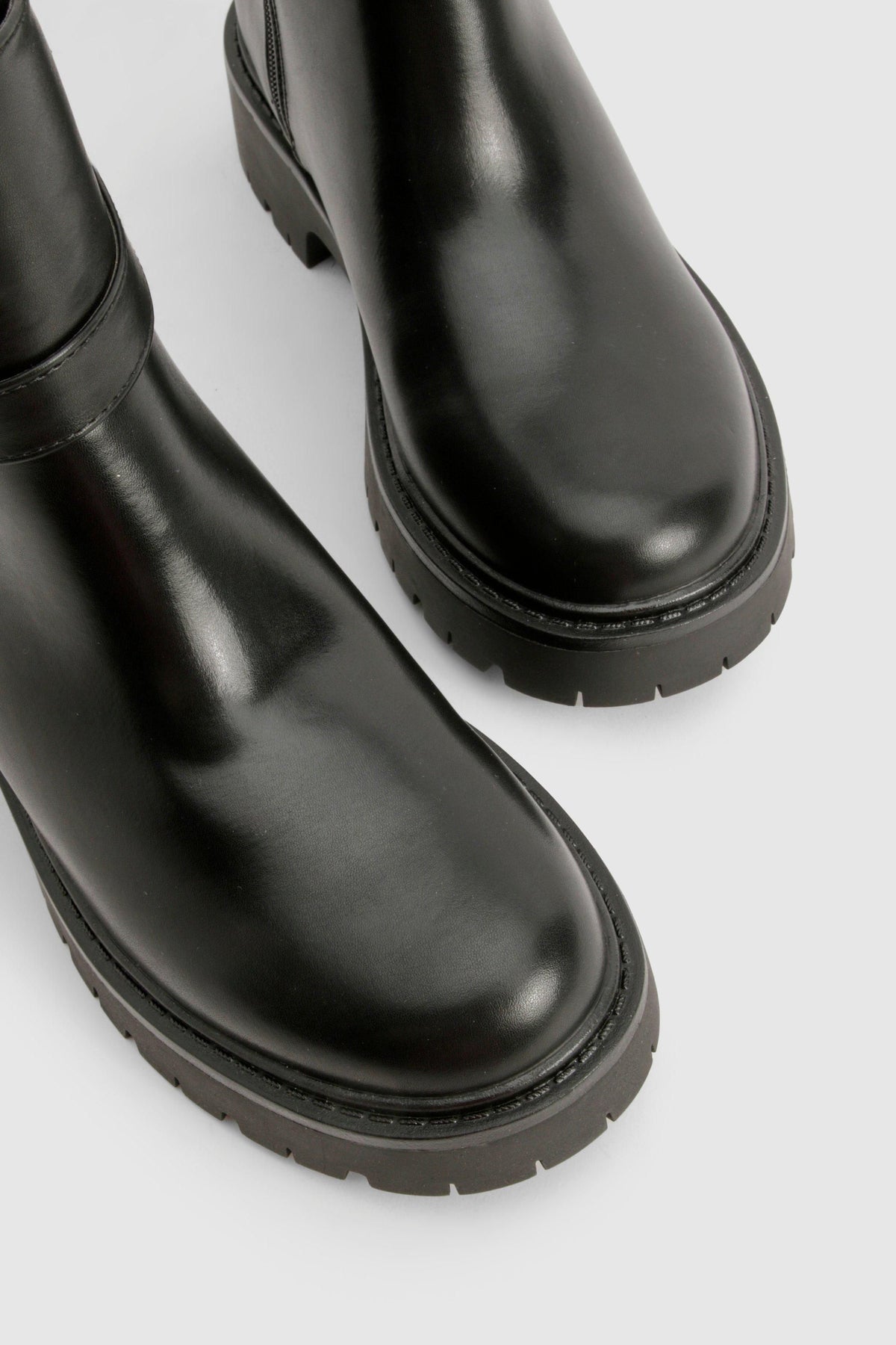 Step out in style with these trendy chunky Chelsea boots, perfect for the fashion-forward woman who values both comfort and edge. The eye-catching buckle detail adds a rebellious touch to the classic silhouette, making these boots a standout piece in any ensemble. Ideal for casual outings, family gatherings, or a day of urban exploration, these boots offer the perfect blend of style and practicality. Pair them with skinny jeans and an oversized jumper for a laid-back look, or dress them up with a flowy midi skirt and leather jacket for a more polished appearance. The flat heel ensures comfort for long walks, while the durable sole provides excellent traction on various surfaces. Whether you're heading to a music festival or meeting friends for brunch, these versatile boots will keep you looking effortlessly chic all day long.Discover Chunky Buckle Detail Chelsea Boots available to buy online at us.boohoo.com. Available with quick delivery and easy return options. Shop now!Discover Chunky Buckle Detail Chelsea Boots available to buy online at us.boohoo.com. Available with quick delivery and easy return options. Shop now!