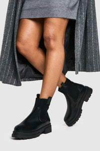 Step out in style with these wide fit chunky Chelsea boots, perfect for the fashion-forward woman who values both comfort and trend. The robust design features a pull tab for easy wear, while the elastic side panels ensure a snug yet flexible fit. Pair these versatile boots with a mini skirt and oversized cardigan for a chic daytime look, or style them with skinny jeans and a leather jacket for an edgy evening ensemble. Ideal for casual outings, family gatherings, or city exploration, these boots offer the perfect blend of practicality and urban flair. Their flat heel provides stability for extended wear, making them a go-to choice for the busy woman on the move. Embrace the chunky boot trend and add a touch of attitude to any outfit with these statement-making Chelsea boots.Discover Wide Fit Double Tab Detail Chunky Chelsea Boots available to buy online at us.boohoo.com. Available with quick delivery and easy return options. Shop now!Discover Wide Fit Double Tab Detail Chunky Chelsea Boots available to buy online at us.boohoo.com. Available with quick delivery and easy return options. Shop now!
