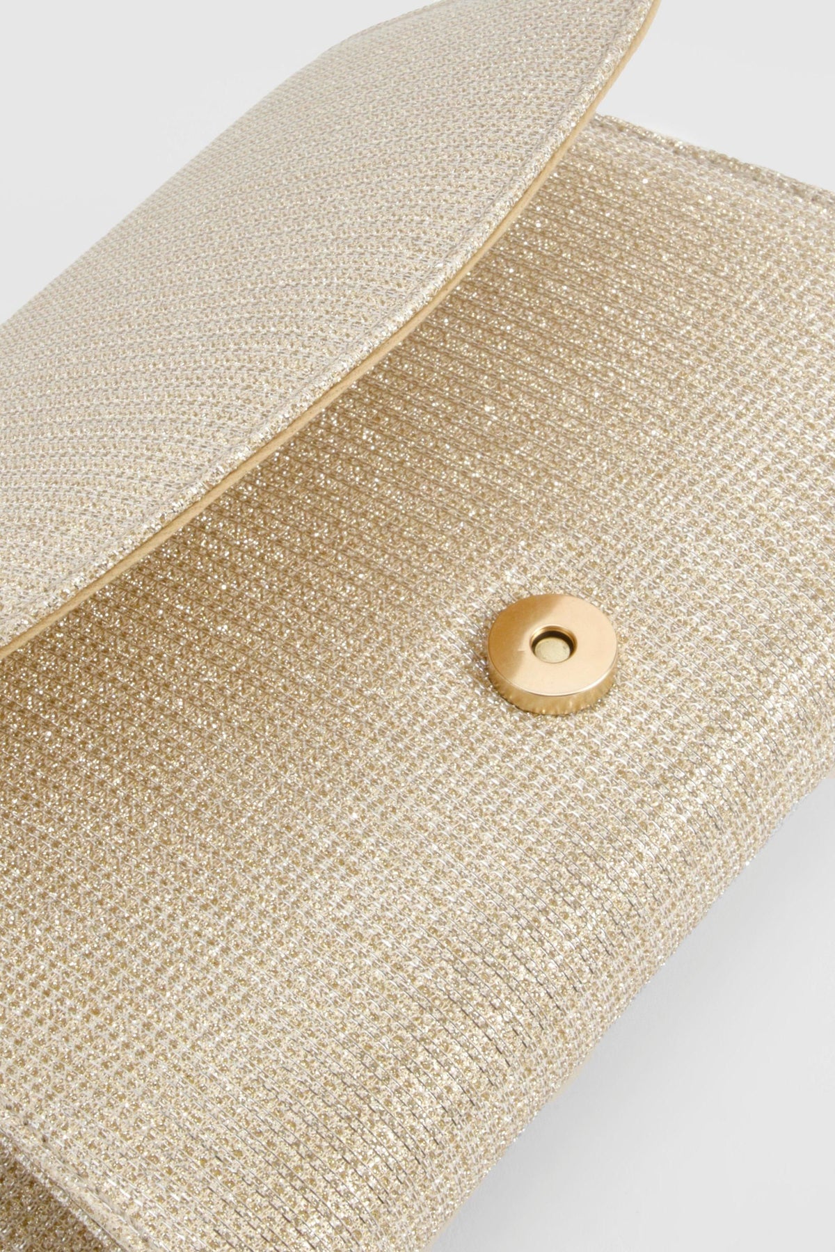 Add a touch of glamour to your evening ensemble with this stunning glitter clutch bag. Its compact yet practical design makes it the perfect companion for a night on the town. The fold-over flap with a secure magnetic closure keeps your belongings safe, while the versatile chain strap allows you to carry it as a clutch or wear it over your shoulder. Style it with a chic little black dress and strappy heels for a classic cocktail look, or pair it with tailored trousers and a silky blouse for a sophisticated dinner date. This sparkling accessory is sure to turn heads at any party, wedding, or formal event. Its versatility makes it a must-have addition to your wardrobe, easily transitioning from casual drinks with friends to glamorous red-carpet affairs.Discover Gold Glitter Envelope Clutch Bag available to buy online at us.boohoo.com. Available with quick delivery and easy return options. Shop now!Discover Gold Glitter Envelope Clutch Bag available to buy online at us.boohoo.com. Available with quick delivery and easy return options. Shop now!