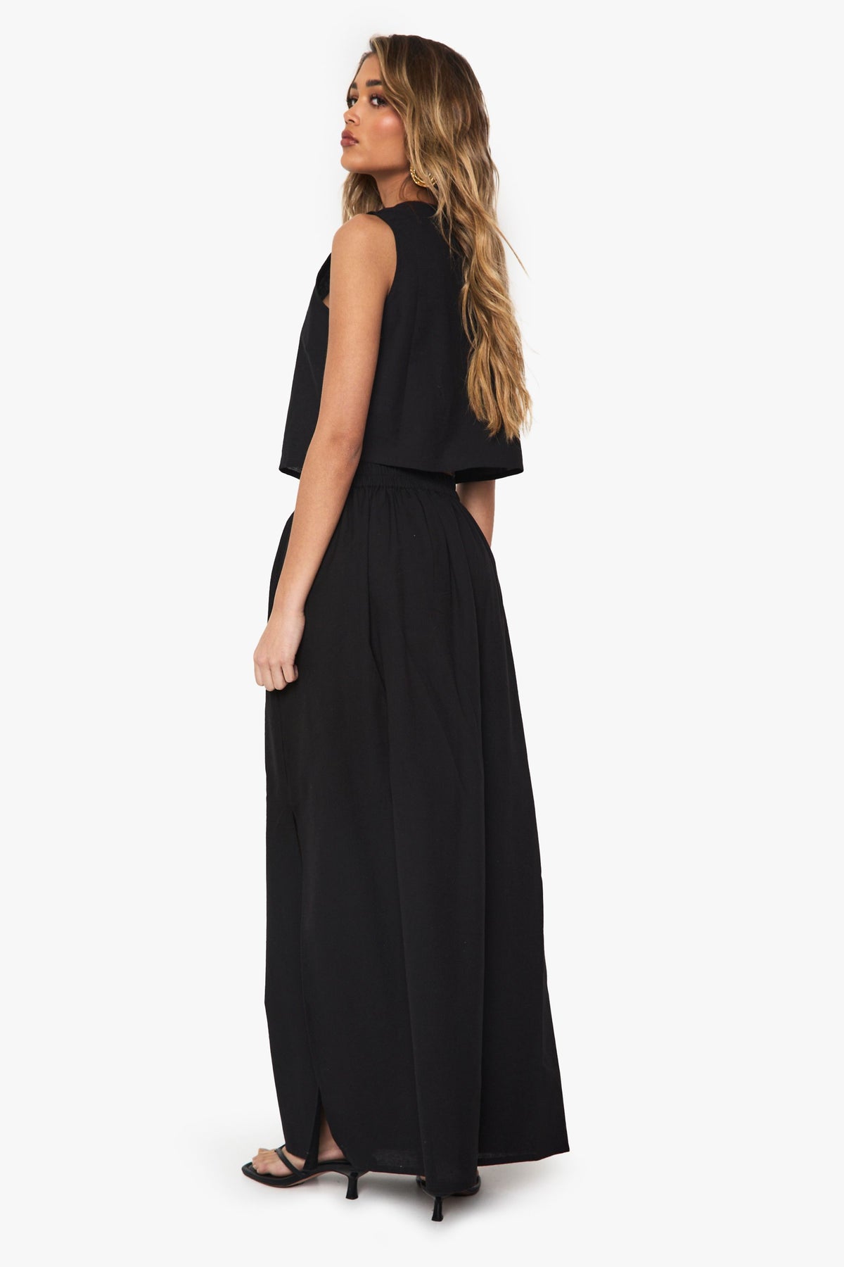 This breezy linen-look co-ord set captures effortless summer style with its contemporary crop top and floor-sweeping maxi skirt combination. The front tie detail creates a customisable neckline that can be adjusted for your desired look, while the flowing maxi skirt drapes beautifully for a relaxed yet put-together appearance. Style with flat sandals and statement sunglasses as seen on our model for daytime casual events, or dress up with metallic accessories and strappy heels for sunset drinks. This versatile set works brilliantly for garden parties, beach holidays or casual family gatherings. Layer with a denim jacket when temperatures drop, or wear the pieces separately to create multiple outfits from your wardrobe. The cotton fabric offers breathable comfort that's perfect for warmer weather whilst maintaining that coveted linen-look texture.Discover Linen Look Tie Front Crop And Maxi Skirt Co-Ord available to buy online at us.boohoo.com. Available with quick delivery and easy return options. Shop now!Discover Linen Look Tie Front Crop And Maxi Skirt Co-Ord available to buy online at us.boohoo.com. Available with quick delivery and easy return options. Shop now!