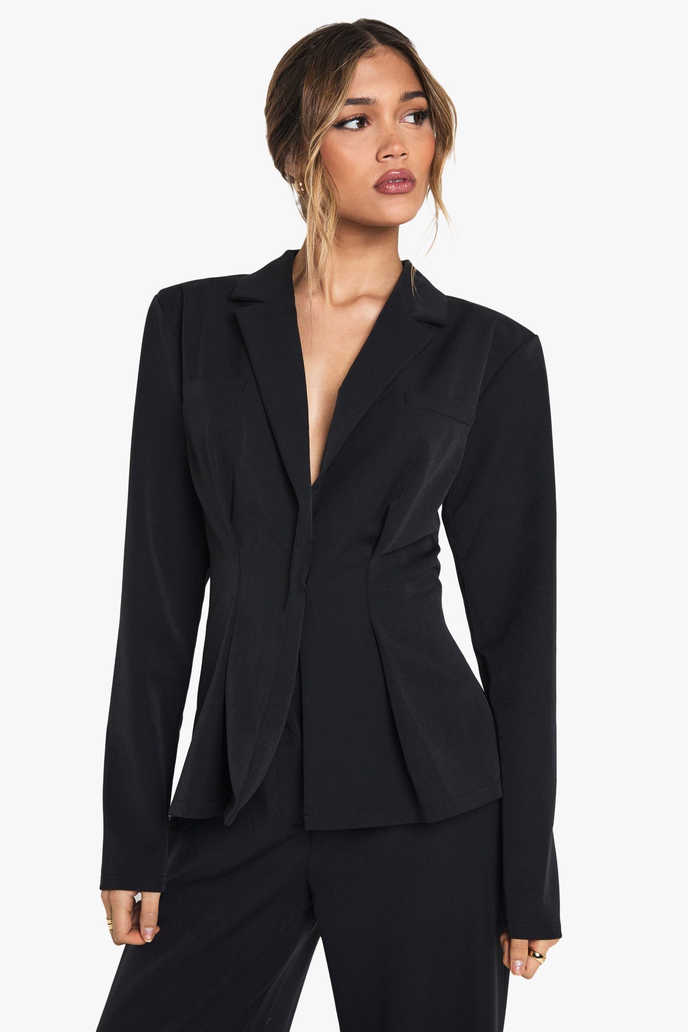 Make a striking impression with this geraffter wickel-blazer, a must-have piece for the fashion-forward woman. The wrap-style design, accentuated by ruched detailing, creates a figure-flattering silhouette that's perfect for a night out on the town. Whether you're heading to a trendy bar or meeting friends for drinks, this blazer effortlessly transitions from day to night. Style it with wide-leg trousers and strappy heels for a sophisticated look, or pair it with a sleek mini skirt and statement jewellery for a bold, club-ready outfit. The versatile regular fit allows for easy layering, making it an essential piece for the urban nightlife scene. Embrace your confidence and let this blazer be the cornerstone of your going-out wardrobe, ready to take you from casual drinks to dancing the night away in style.Discover Cinched Wrap Over Blazer available to buy online at us.boohoo.com. Available with quick delivery and easy return options. Shop now!Discover Cinched Wrap Over Blazer available to buy online at us.boohoo.com. Available with quick delivery and easy return options. Shop now!