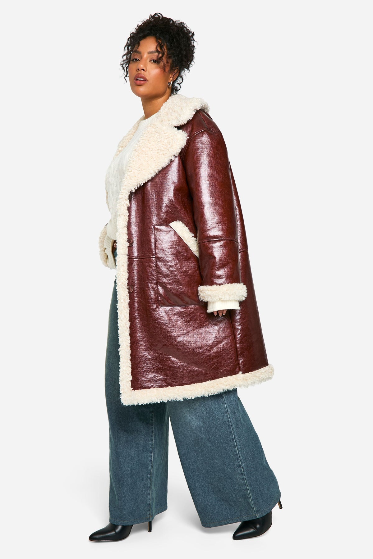 Make a bold statement this season with our Plus Faux Leather Aviator Jacket featuring cosy teddy detailing. This eye-catching piece combines the rugged charm of a classic aviator with the comfort of plush lining, perfect for those chilly British evenings. Style it over a crisp white jumper and wide-leg jeans for a casual yet put-together look. The oversized fit allows for easy layering, making it versatile for various occasions. Whether you're heading to a family gathering or meeting friends for a pub lunch, this jacket will keep you warm and stylish. Pair it with ankle boots for a trendy edge or trainers for a more relaxed vibe. The contrasting textures and generous cut make this jacket a standout piece in any wardrobe, ensuring you'll turn heads wherever you go.Discover Plus Faux Leather Teddy Trim Longline Aviator Jacket available to buy online at us.boohoo.com. Available with quick delivery and easy return options. Shop now!Discover Plus Faux Leather Teddy Trim Longline Aviator Jacket available to buy online at us.boohoo.com. Available with quick delivery and easy return options. Shop now!