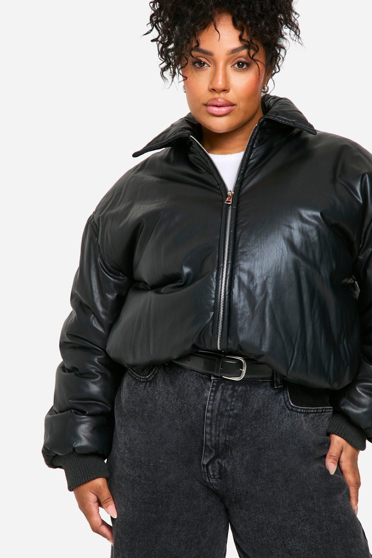 Make a bold statement with this plus-size padded bomber jacket from Boohoo. The faux leather exterior adds an edgy touch to your ensemble, while the padded design ensures warmth and comfort. Style it with high-waisted jeans and a simple white tee for a classic look, or throw it over a midi dress for a chic contrast. Perfect for casual outings, family gatherings, or a night out with friends, this jacket is a versatile addition to your wardrobe. For a trendy twist, pair it with wide-leg trousers and trainers, accessorising with a statement bag as seen on our model. The jacket's roomy fit allows for easy layering, making it ideal for transitional weather. Embrace your confidence and showcase your style with this must-have piece that combines comfort and fashion-forward design.Discover Plus Padded Faux Leather Bomber Jacket available to buy online at us.boohoo.com. Available with quick delivery and easy return options. Shop now!Discover Plus Padded Faux Leather Bomber Jacket available to buy online at us.boohoo.com. Available with quick delivery and easy return options. Shop now!