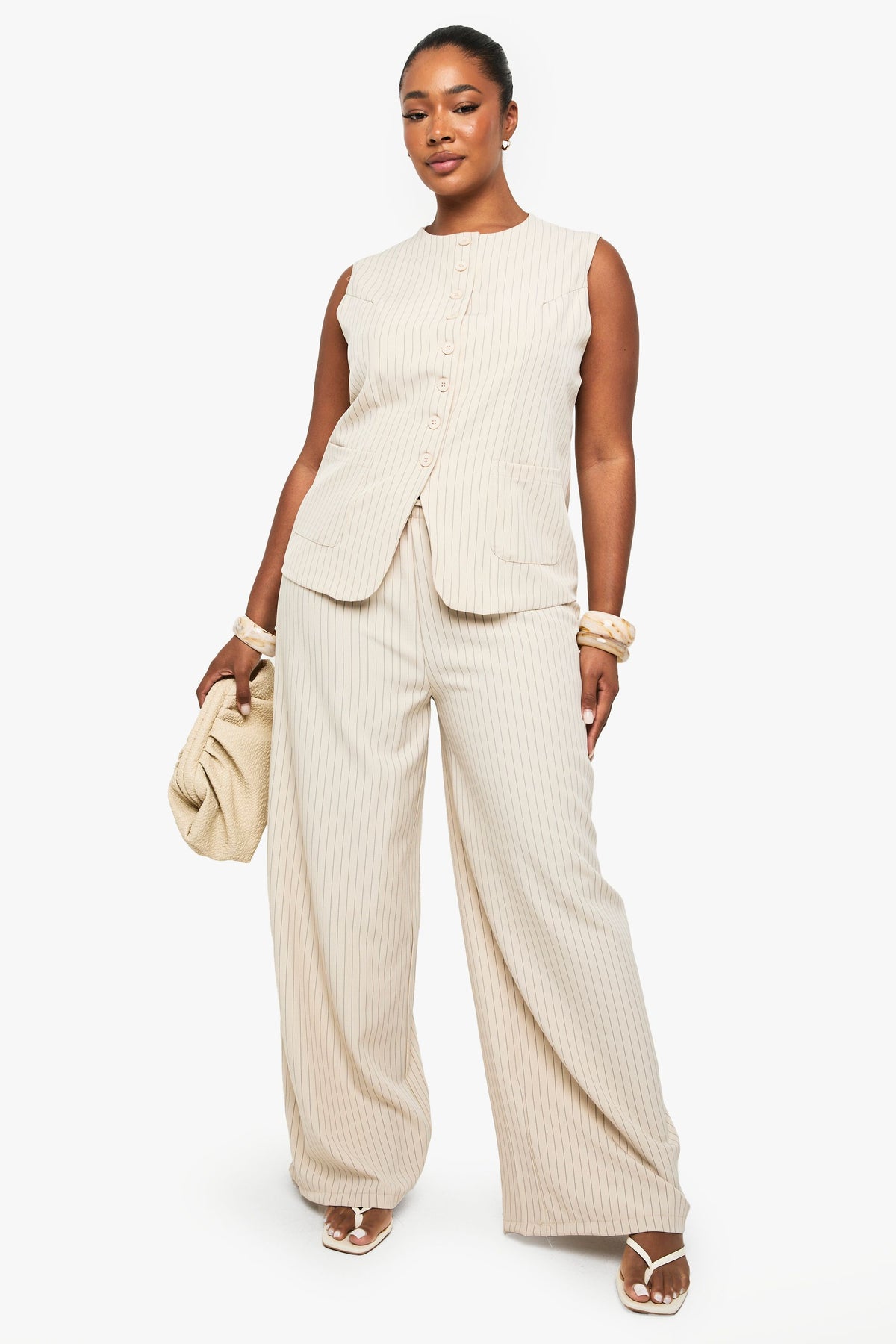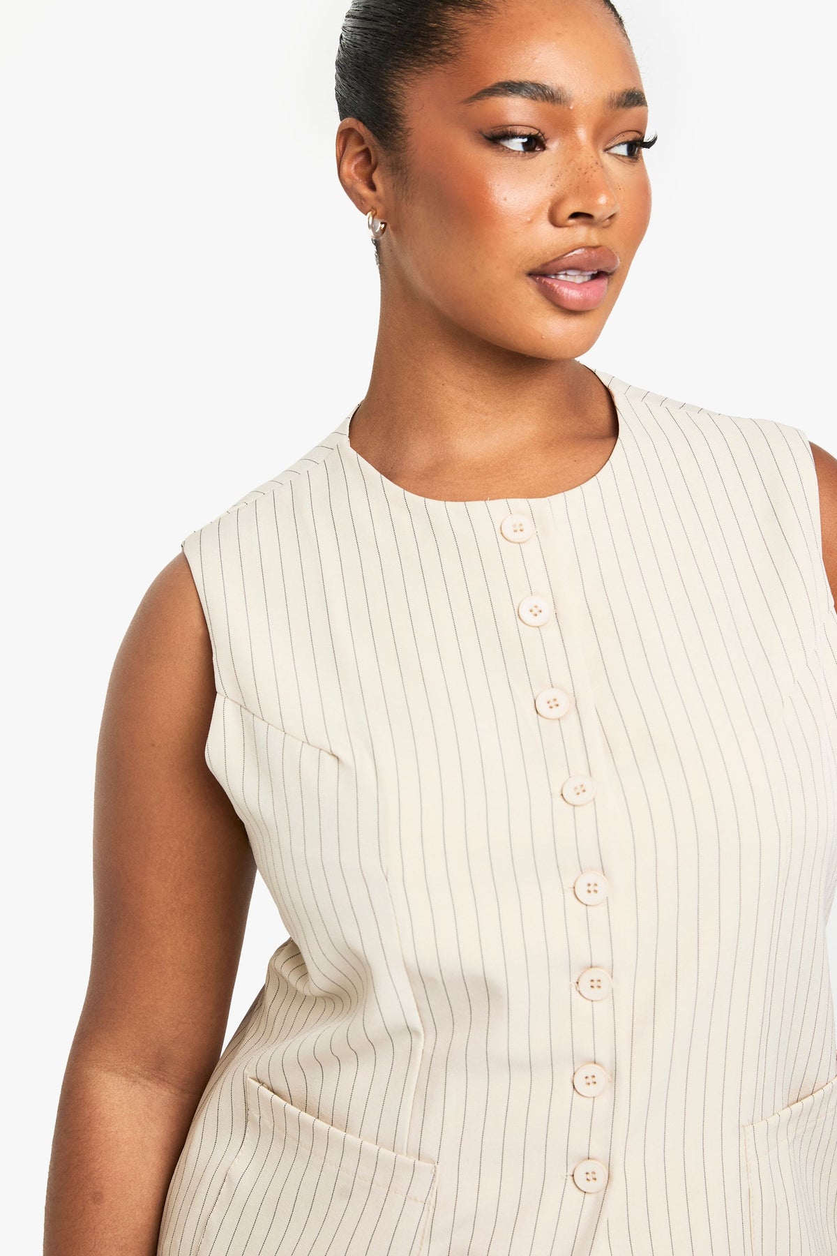 This chic waistcoat reimagines traditional tailoring for the modern woman who demands both style and comfort. The boxy fit offers a relaxed yet structured silhouette that flatters curves beautifully, while the button-front detail adds a touch of classic refinement. Style with the matching wide-leg trousers as seen on our model for a coordinated ensemble that commands attention at any nightlife venue. For an evening out, pair with statement jewellery and strappy heels to enhance the sophisticated vibe. Alternatively, create contrast by styling with fitted jeans and chunky boots for an edgier look. Perfect for drinks with the girls or dancing the night away, this versatile waistcoat works brilliantly as part of a layered outfit or as a standout piece on warmer evenings. The timeless design ensures this Boohoo piece will remain a wardrobe favourite for seasons to come.Discover PLUS TAILORED BUTTON DOWN WAISTCOAT available to buy online at us.boohoo.com. Available with quick delivery and easy return options. Shop now!Discover PLUS TAILORED BUTTON DOWN WAISTCOAT available to buy online at us.boohoo.com. Available with quick delivery and easy return options. Shop now!