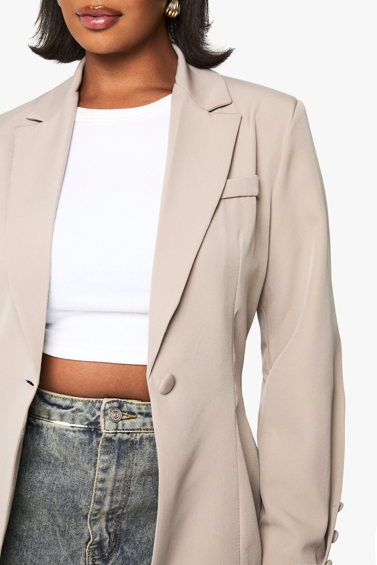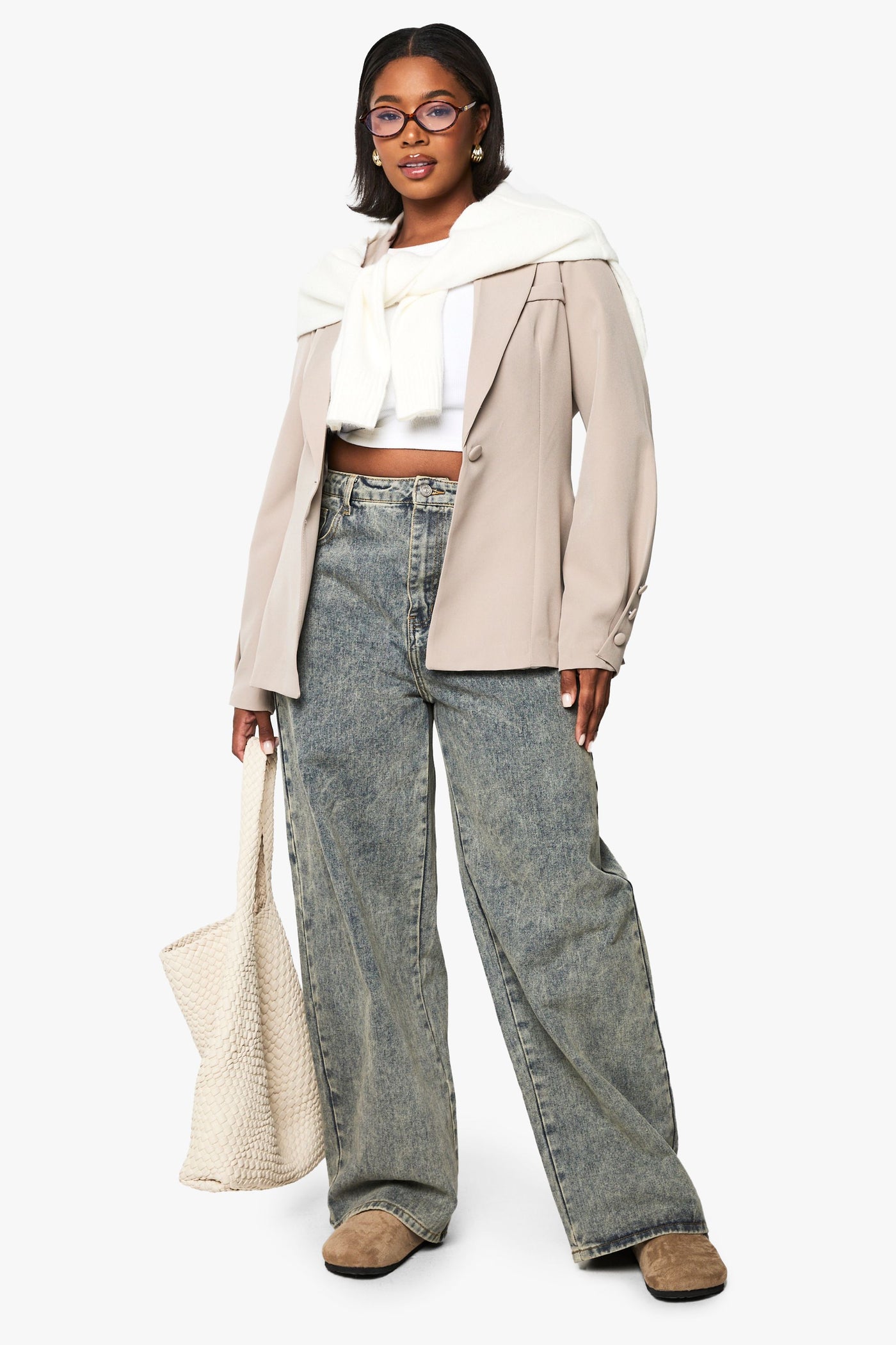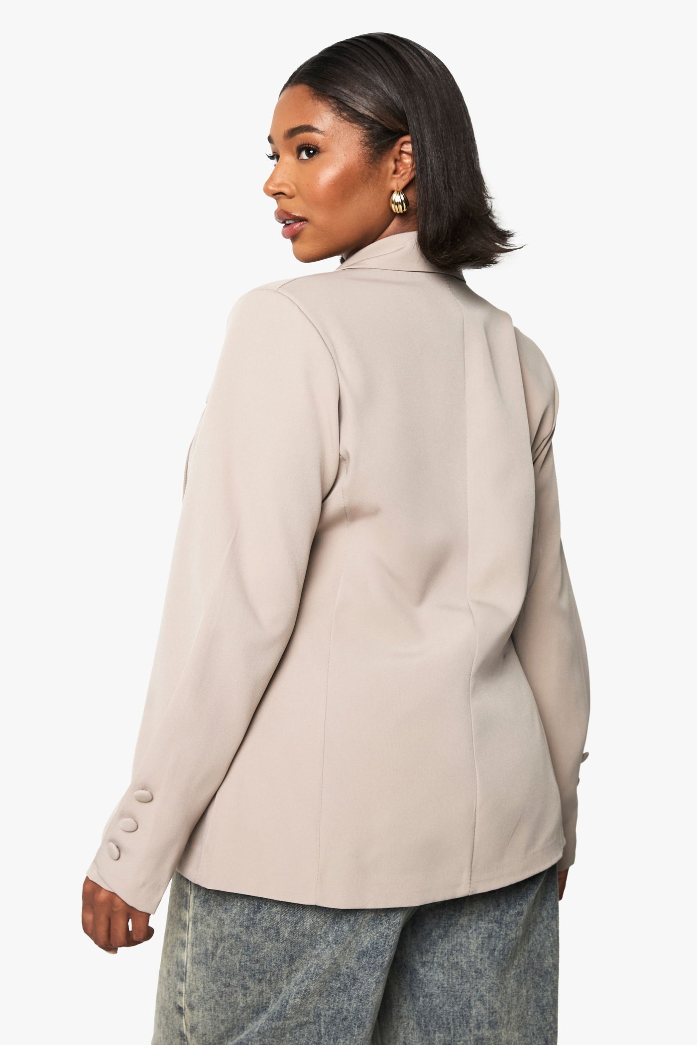 Plus Woven Tailored Self Fabric Button Detail Blazer