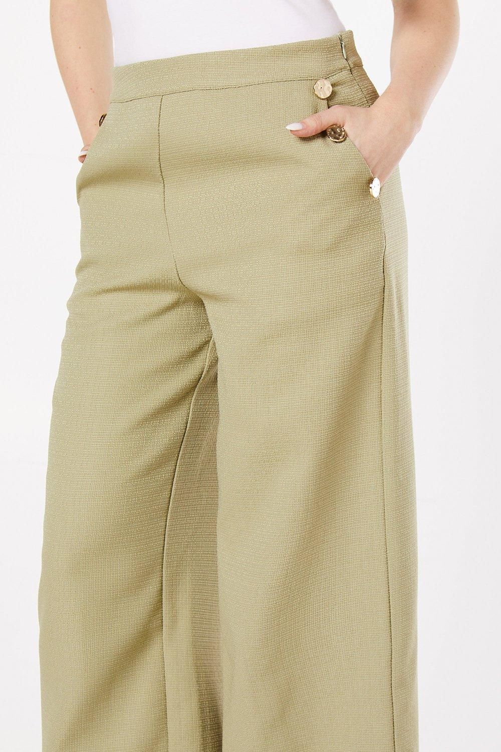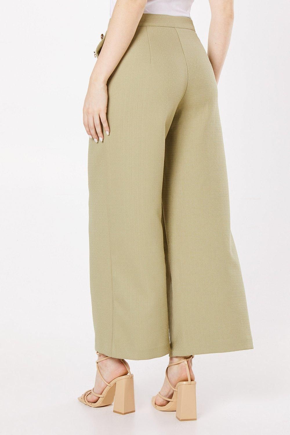 Embrace sophistication with these Dorothy Perkins wide leg trousers, designed for the fashion-forward woman who values both style and comfort. The textured fabric lends a luxurious feel, while the cropped length offers versatility for various occasions. Perfect for the office, these trousers can be paired with a crisp blouse and blazer for a professional look. For a more relaxed ensemble, try styling with a tucked-in silk camisole and strappy heels. The high-waisted fit and wide leg cut create a flattering silhouette, ideal for brunch dates or baby showers. The button detail adds a touch of elegance, making these trousers a standout piece in your wardrobe. Transition effortlessly from day to night by swapping your work pumps for statement earrings and a clutch bag, ready for after-work drinks or dinner with friends.Discover Button Detail Crop Wide Leg Textured Trouser available to buy online at us.boohoo.com. Available with quick delivery and easy return options. Shop now!Discover Button Detail Crop Wide Leg Textured Trouser available to buy online at us.boohoo.com. Available with quick delivery and easy return options. Shop now!