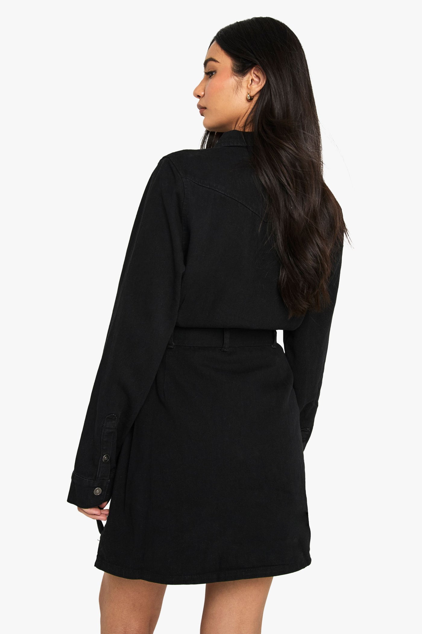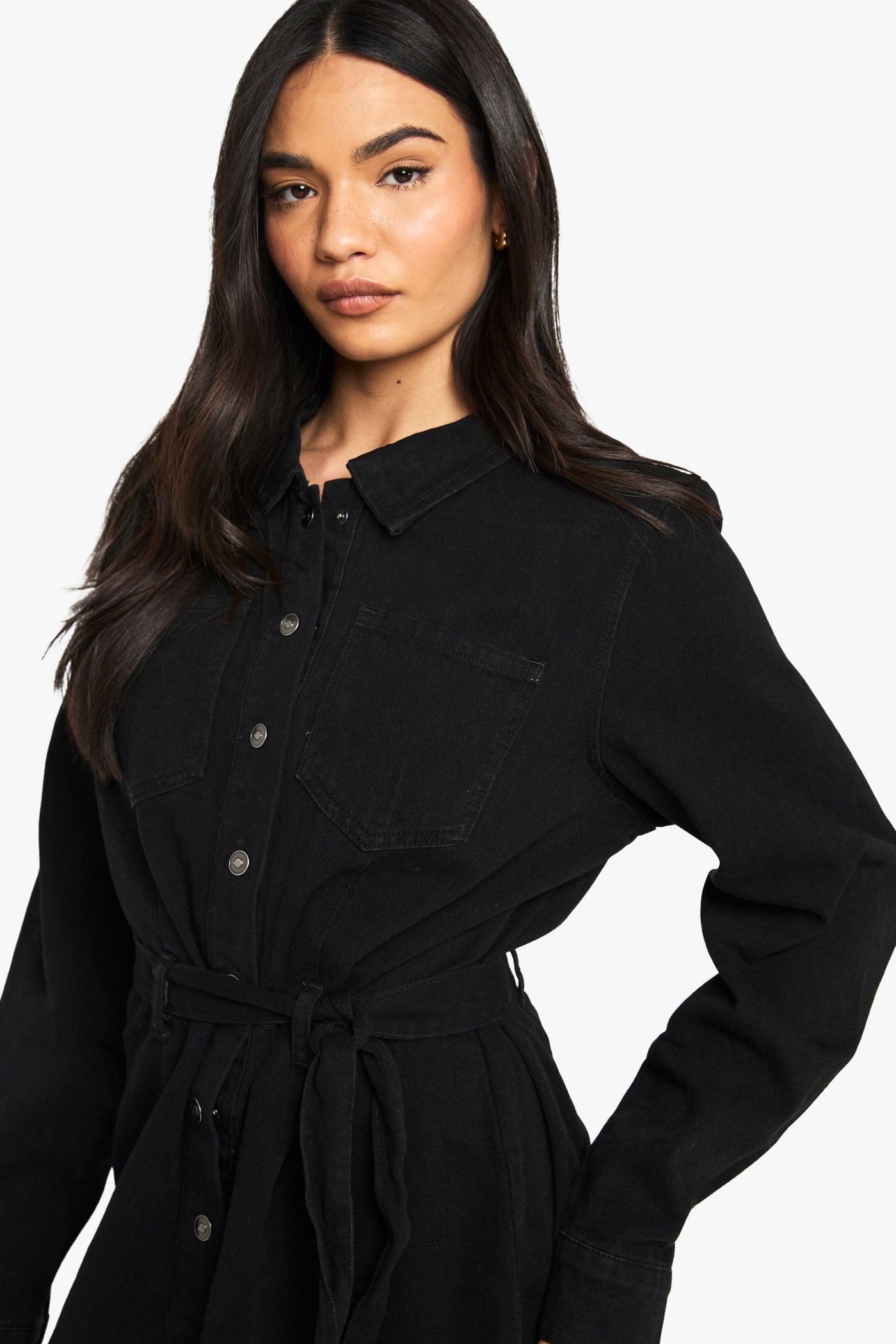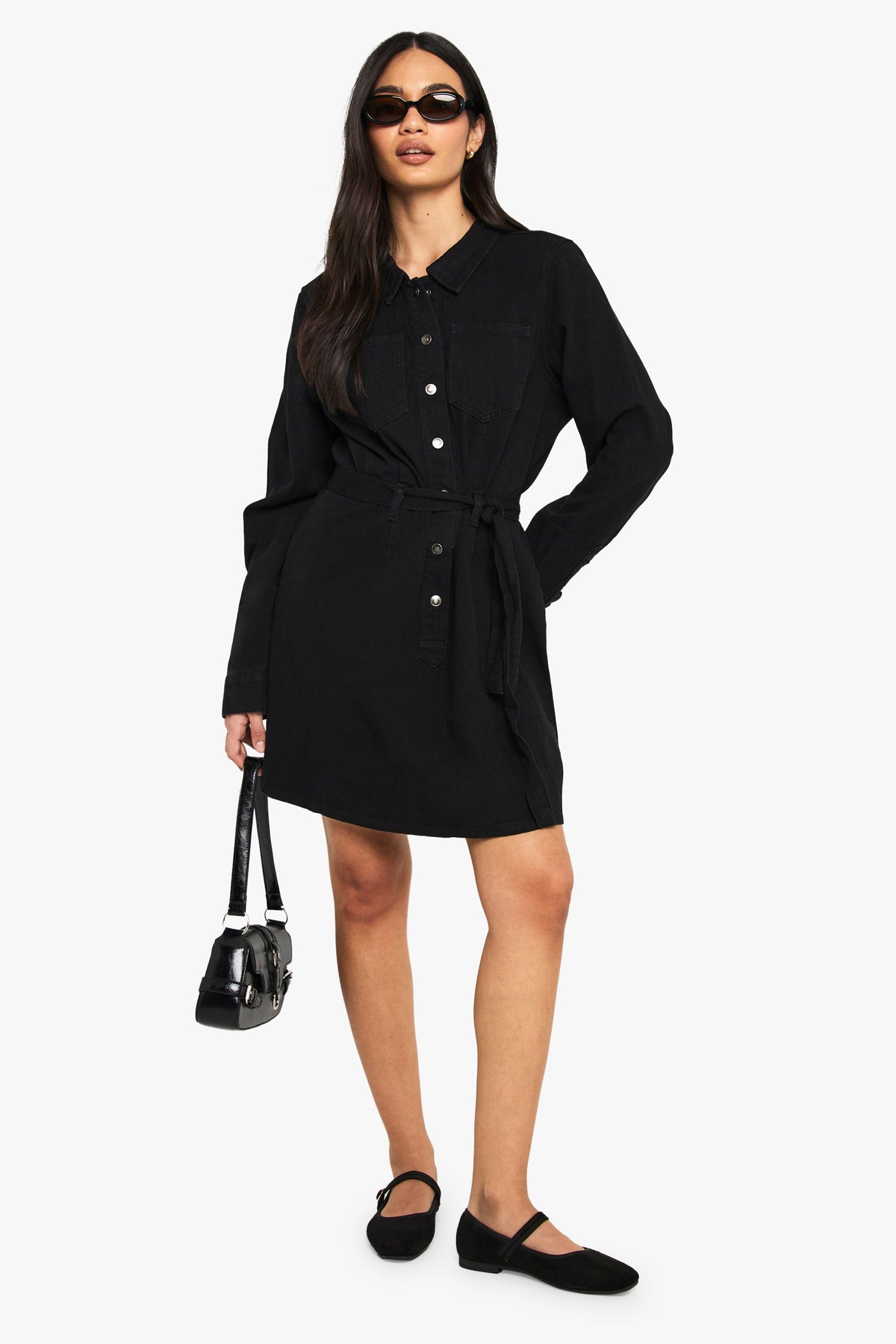 This denim shirt dress combines effortless style with everyday practicality. The structured collar and button-through design create a smart-casual look that works brilliantly for various occasions. Cinch the included tie belt to create definition at the waist, or wear it looser for a more relaxed feel. Style with ballet flats and a mini handbag for daytime outings as seen on our model, or switch to chunky boots and statement jewellery for evening drinks with friends. For cooler days, layer with a cropped jumper or oversized cardigan. The versatile mini length makes this dress a true wardrobe hero that transitions seamlessly from casual coffee dates to family gatherings. Pair with trainers and a denim jacket for a contemporary double-denim look that's right on trend.Discover Denim Shirt Dress available to buy online at us.boohoo.com. Available with quick delivery and easy return options. Shop now!Discover Denim Shirt Dress available to buy online at us.boohoo.com. Available with quick delivery and easy return options. Shop now!