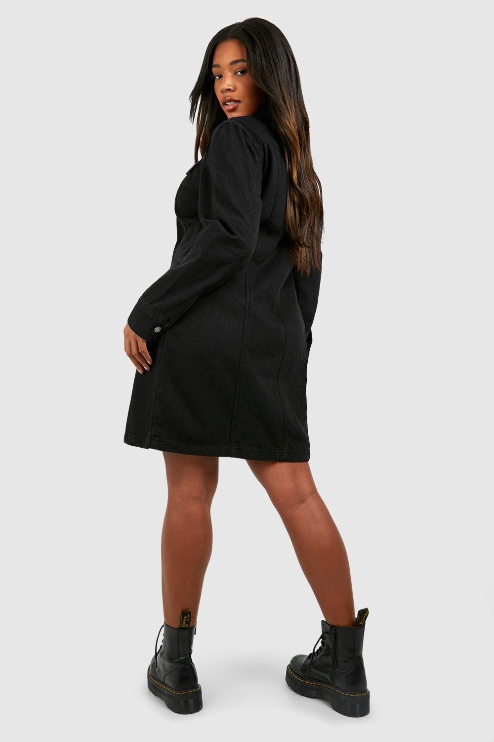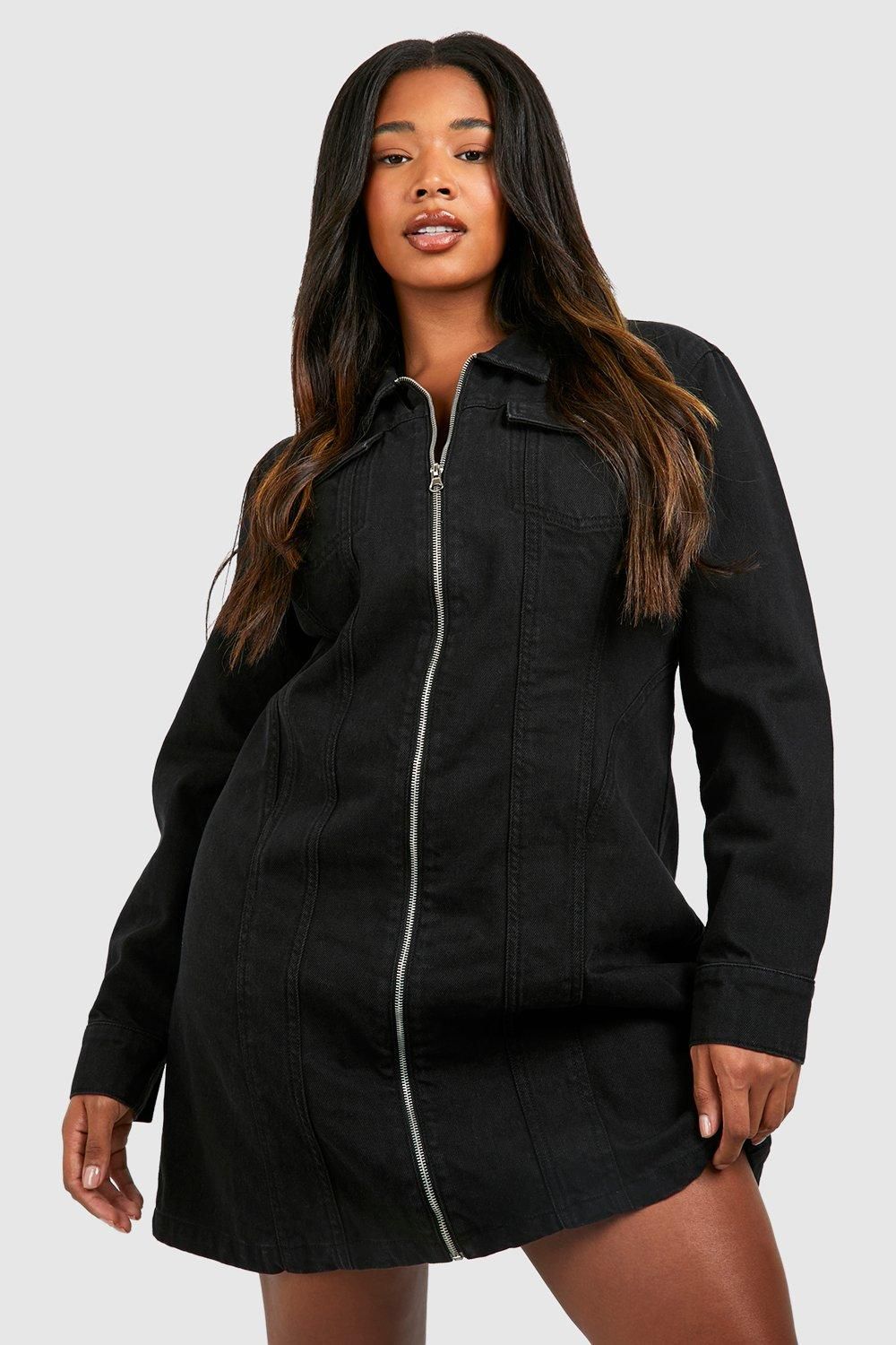 This versatile denim shift dress combines casual charm with effortless style. The structured collar and full-length zip fastening create a contemporary look that can be styled multiple ways-wear fully zipped for a sleek silhouette or partially unzipped for a more relaxed feel. As seen on our model, pair with chunky boots for an edgy daytime ensemble that transitions perfectly from coffee dates to casual gatherings. The straight-cut design skims the body beautifully while the cotton fabric ensures breathability and comfort throughout the day. This Boohoo staple works brilliantly with trainers and a crossbody bag for weekend shopping trips, or dress it up with tights and ankle boots as temperatures drop. A true wardrobe essential that delivers on both style and practicality for the fashion-forward woman.Discover Plus Denim Zip Up Shift Dress available to buy online at us.boohoo.com. Available with quick delivery and easy return options. Shop now!Discover Plus Denim Zip Up Shift Dress available to buy online at us.boohoo.com. Available with quick delivery and easy return options. Shop now!