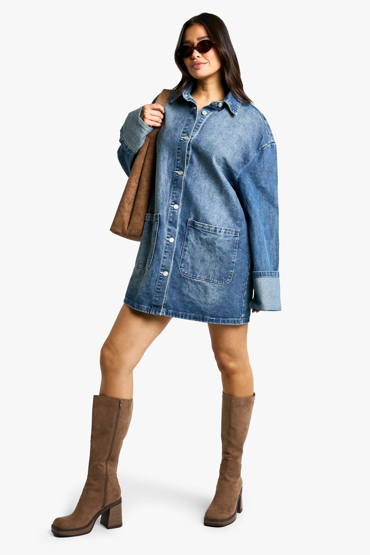 This Boohoo Tall Oversize Denim Shirt Dress combines casual cool with practical design for the fashion-forward woman. The relaxed fit creates a laid-back silhouette that's perfect for everyday wear, whilst the turned-up cuffs add a touch of contemporary flair. Style with chunky boots and a shoulder bag for an effortless daytime look, as shown on our model. For cooler days, layer over a thin rollneck and pair with tights. The versatile denim fabric makes this piece ideal for family gatherings, weekend brunches or casual coffee dates. Dress it down with trainers for errands around town or customise your look with a belt to define the waist. This shirt dress offers the perfect balance of comfort and style for the modern woman who values both fashion and functionality.Discover Tall Utility Turn Cuff Denim Oversized Shirt Dress available to buy online at us.boohoo.com. Available with quick delivery and easy return options. Shop now!Discover Tall Utility Turn Cuff Denim Oversized Shirt Dress available to buy online at us.boohoo.com. Available with quick delivery and easy return options. Shop now!
