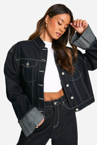 Make a bold statement with this tall indigo-washed denim jacket, perfect for the fashion-forward woman who loves to stay ahead of the trends. The oversized fit offers a contemporary twist on a timeless classic, allowing for effortless layering over your favourite outfits. Style it with a crop top and wide-leg jeans for a coordinated denim-on-denim look, or throw it over a floral dress to add an edgy contrast to a feminine ensemble. Ideal for casual outings, from coffee dates to shopping trips with friends, this versatile piece can be dressed up or down with ease. For a night out, pair it with a sleek bodycon dress and ankle boots to create a chic juxtaposition of styles. The denim jacket is a wardrobe essential that will see you through multiple seasons, offering endless styling possibilities for the creative fashionista.Discover Tall Indigo Deep Turn Up Cuff Denim Jacket available to buy online at us.boohoo.com. Available with quick delivery and easy return options. Shop now!Discover Tall Indigo Deep Turn Up Cuff Denim Jacket available to buy online at us.boohoo.com. Available with quick delivery and easy return options. Shop now!