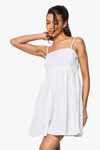 Voluminous smocked mini dress crafted from breathable cotton poplin