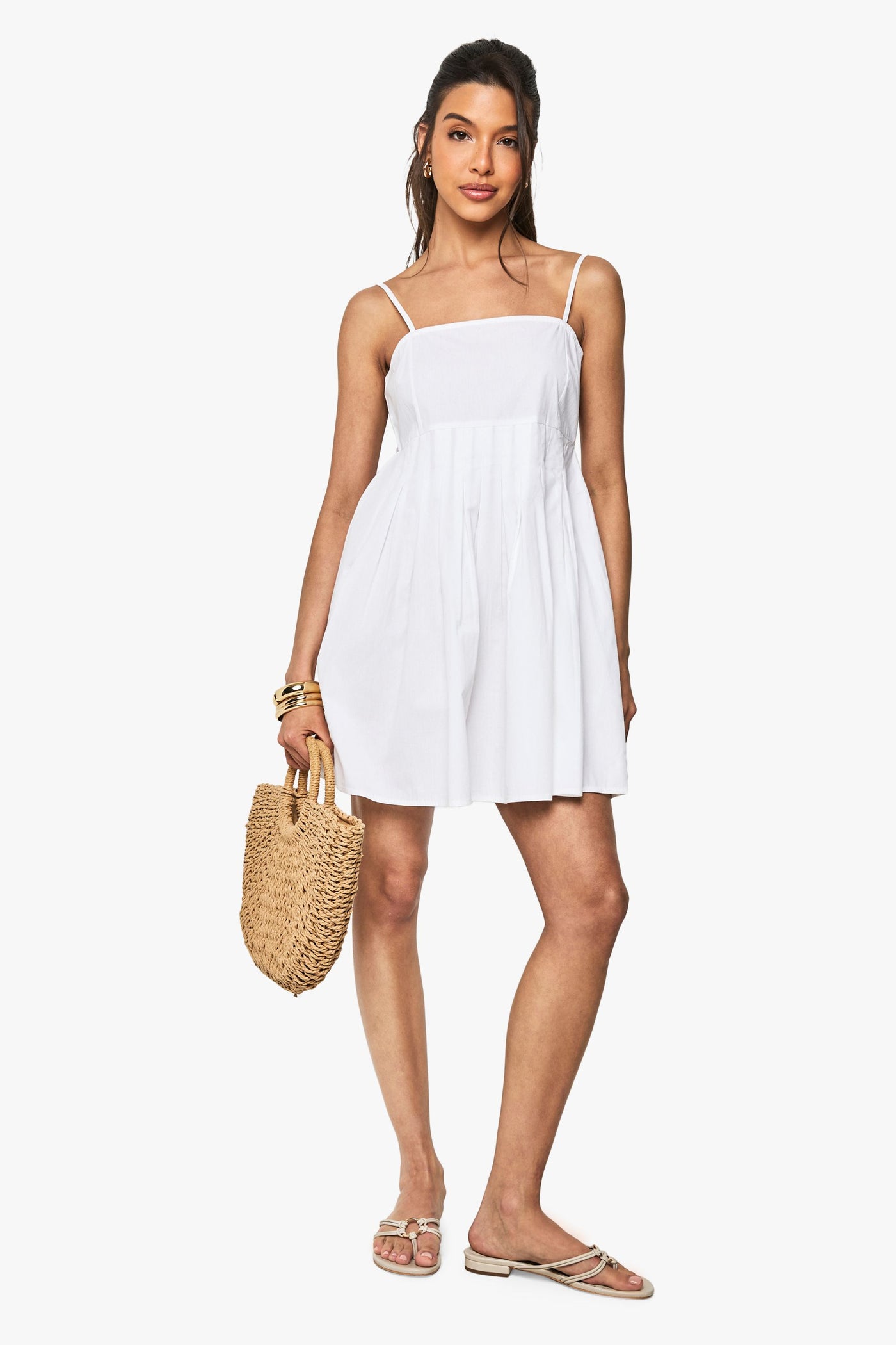 This charming Boohoo mini dress combines comfort with carefree style for your everyday wardrobe. The cotton poplin fabric ensures breathability whilst the smocked detailing adds a touch of texture and interest to the bodice. Style with flat sandals and a woven tote bag for daytime outings, as shown on our model, or dress it up with espadrille wedges and statement earrings for casual garden parties. The square neckline frames the dcolletage beautifully, making it ideal for showcasing dainty necklaces. For cooler evenings, layer with a lightweight denim jacket and switch to trainers for a more relaxed look. Perfect for family gatherings, brunches with friends, or holiday packing where versatility is key.Discover Cotton Poplin Pleated Volume Smock Mini Dress available to buy online at us.boohoo.com. Available with quick delivery and easy return options. Shop now!Discover Cotton Poplin Pleated Volume Smock Mini Dress available to buy online at us.boohoo.com. Available with quick delivery and easy return options. Shop now!