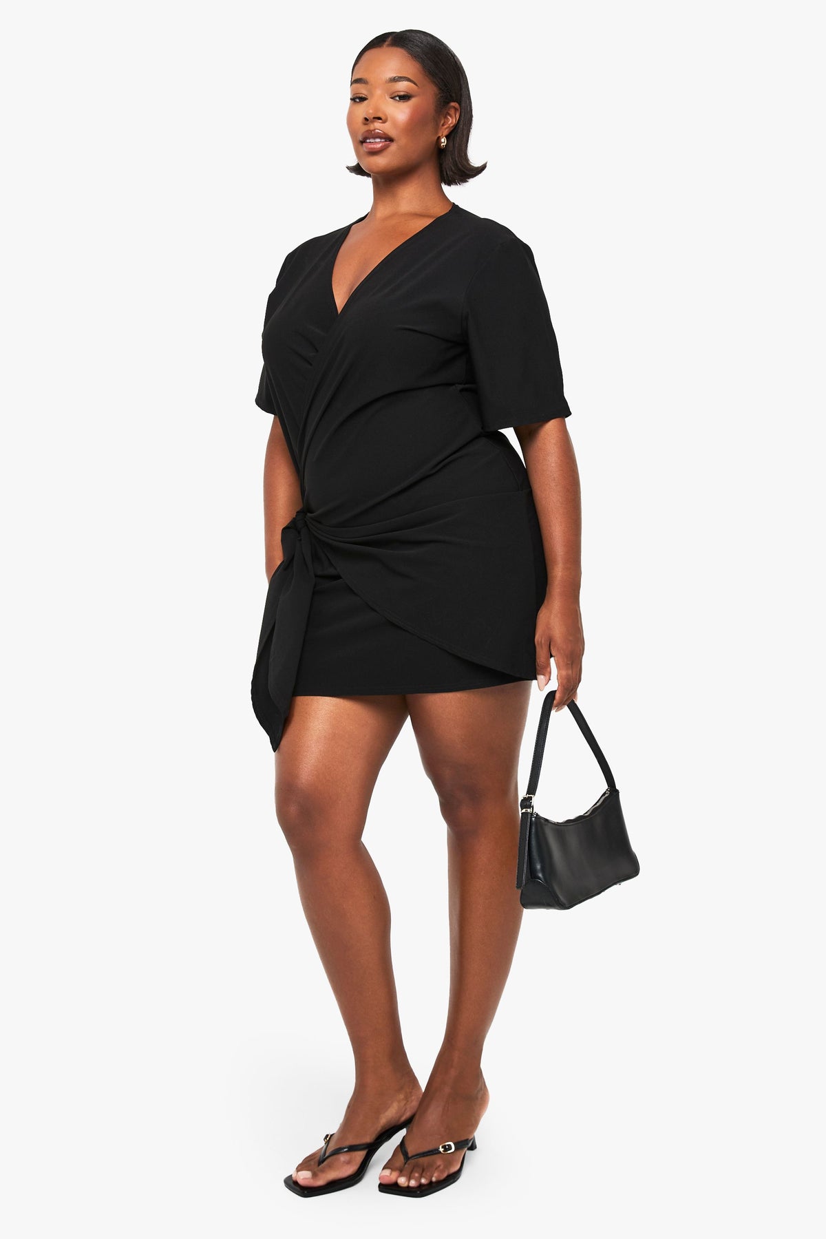 This wrap mini dress is the definition of effortless chic for your casual wardrobe. The clever wrap design creates a flattering silhouette that accentuates your curves whilst the adjustable side tie allows you to customise the fit to your preference. Style with flat sandals and a compact shoulder bag for daytime gatherings, as seen on our model. For evening socials, swap your flats for block heels and add statement earrings. The versatile design makes it perfect for family brunches, casual meet-ups with friends, or relaxed weekend outings. The jersey crepe fabric offers comfort without compromising on style, making this Boohoo dress a wardrobe essential that transitions seamlessly from day to night whilst maintaining that coveted balance of comfort and contemporary fashion.Discover Plus dropped wrap mini dress available to buy online at us.boohoo.com. Available with quick delivery and easy return options. Shop now!Discover Plus dropped wrap mini dress available to buy online at us.boohoo.com. Available with quick delivery and easy return options. Shop now!