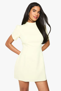 Tailored mini dress with structured cap sleeves for a contemporary silhouette