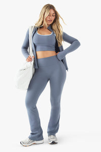 Flattering flared leg silhouette creates a lengthening effect