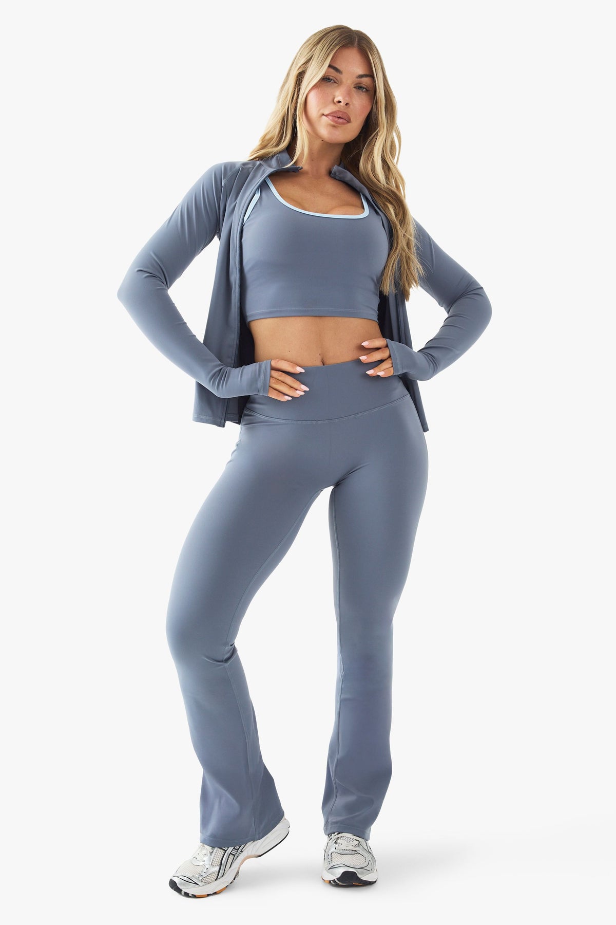 These DSGN Studio Sports Flared Leggings combine style with functionality for the modern active woman. The high-waisted design offers excellent tummy control while the soft jersey cotton fabric moves with your body for unrestricted movement during any workout. Style with the matching crop top and zip-up jacket as shown for a coordinated athleisure look that transitions effortlessly from gym sessions to casual coffee meetups. The flared leg adds a fashionable retro touch to your fitness wardrobe, making these leggings versatile enough to pair with trainers for workouts or chunky boots for an on-trend street style moment. Perfect for yoga, pilates, or simply lounging about town, these leggings deliver both comfort and confidence for the fashion-forward Boohoo girl.Discover DSGN Studio Sports Ultra Sculpt High Waist Flared Legging available to buy online at us.boohoo.com. Available with quick delivery and easy return options. Shop now!Discover DSGN Studio Sports Ultra Sculpt High Waist Flared Legging available to buy online at us.boohoo.com. Available with quick delivery and easy return options. Shop now!