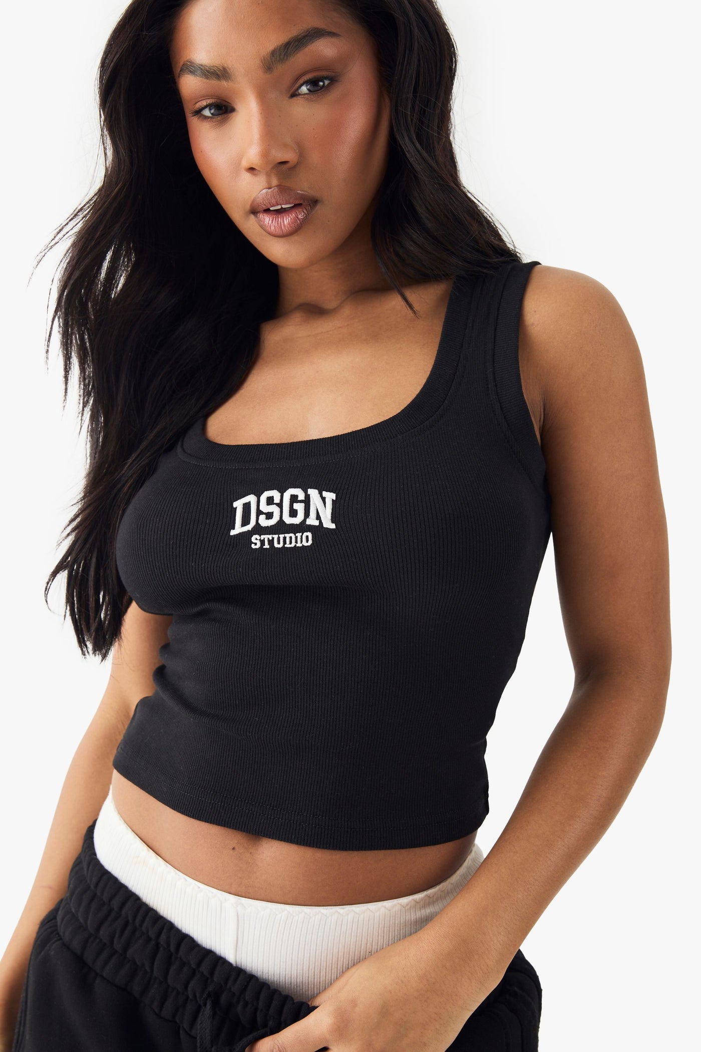 This ribbed baby T-shirt from Boohoo's DSGN Studio collection offers the perfect balance of comfort and contemporary style. The textured ribbed fabric hugs your curves whilst the sleeveless design keeps you cool during warmer days. Style with wide-leg trousers as seen on our model for a balanced silhouette that works brilliantly for casual daytime outings. For a relaxed weekend look, pair with your favourite denim and trainers, or dress it up with a blazer and straight-leg trousers for casual Friday at the office. The versatile design makes it ideal for layering under dungarees or pairing with high-waisted skirts for summer festivals. This wardrobe essential adapts effortlessly to your social calendar, from coffee dates to casual family gatherings.Discover DSGN Studio Collegiate Embroidered Rib Tank Vest Top available to buy online at us.boohoo.com. Available with quick delivery and easy return options. Shop now!Discover DSGN Studio Collegiate Embroidered Rib Tank Vest Top available to buy online at us.boohoo.com. Available with quick delivery and easy return options. Shop now!